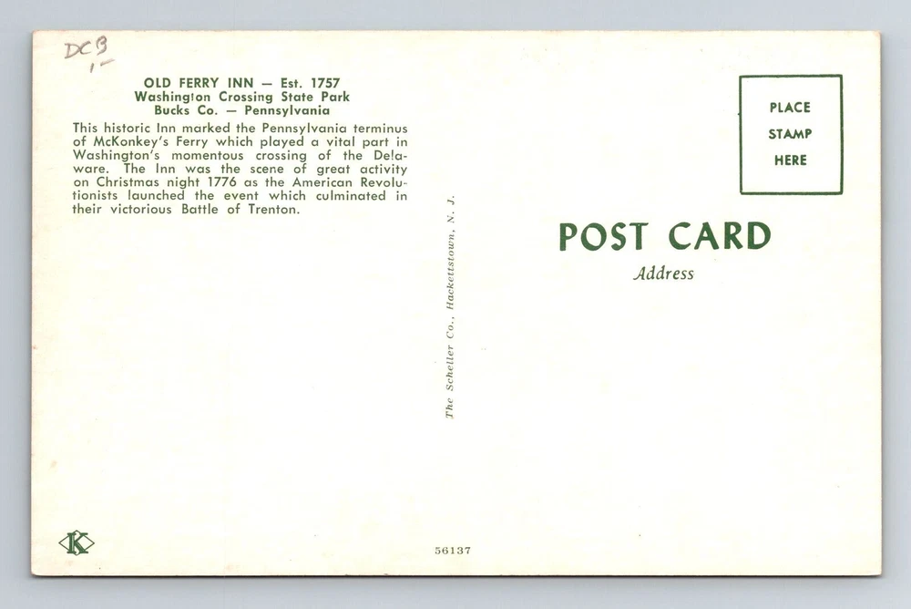 Bucks County PA-Pennsylvania Historic 1757 Old Ferry Inn Vintage Postcard