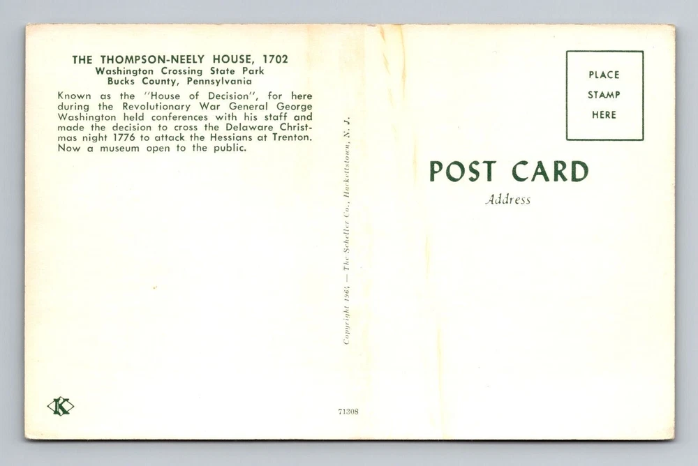 Bucks County PA-Pennsylvania, The Thompson-Neely House, Vintage Postcard