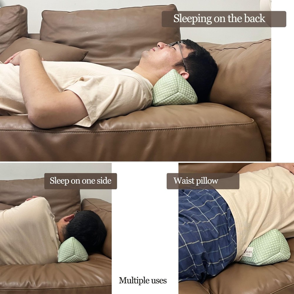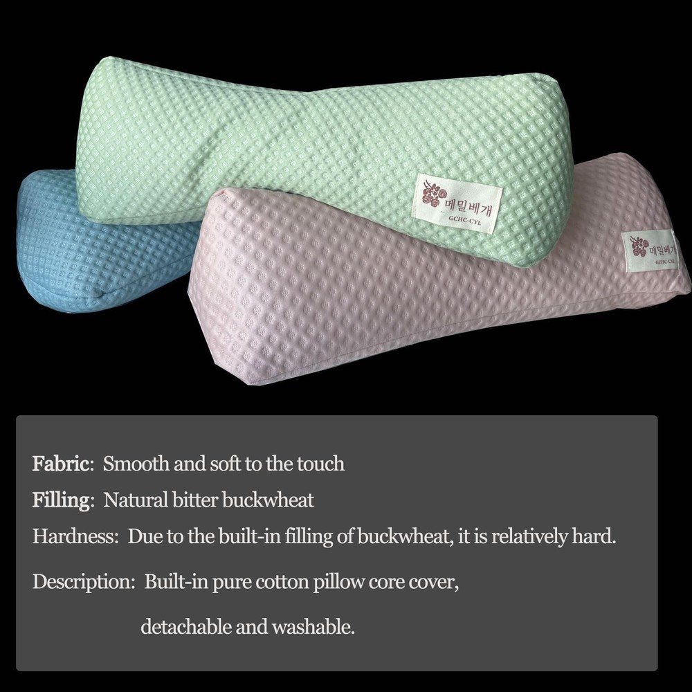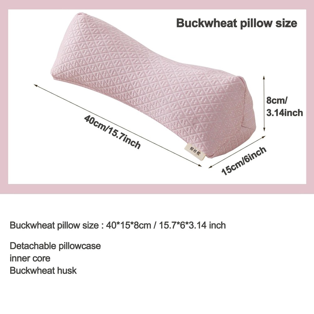 Buckwheat Pillow shape: Round Triangle cervical pillow Ingredients: High Quality Buckwheat Hull Pillow height: 8-10cm Applicable number: single Pillow weight: 0.6 kg Dimensions: 40x15cm (length x diameter) color:Pink,Gray,Blue.Green 【Cool-feeling pillowcase fabric】: Made of cool-feeling fiber, it has a smooth touch, is breathable and does not feel stuffy, fitting the neck well. It will be more comfortable to use in summer. 【 Buckwheat Husk Filling 】 The filling is made of buckwheat husks, which can flow and disperse neck pressure. The triangular bone and the middle low design can better fit the shoulders and provide stable support. 【 Adjustable Height 】 The pillowcase is easy to disassemble and clean. Open the pillowcase zipper and you can adjust the fullness of the buckwheat filling according to your needs. 【Relieve Neck Pain】 Buckwheat pillows are very supportive and won't flatten. It can relieve neck pain and make you feel Comfortable. 【Portable size 】: The size of the neck pillow is 15.7x5.9inches. Pillow height: 3-4Inch,This size is very convenient to carry
