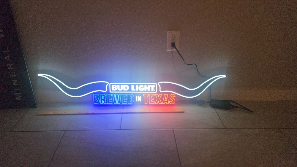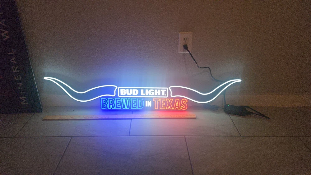 Bud Light Texas Longhorn Wide Neon Beer Bar Sign New Budweiser Over 4ft Wide Led