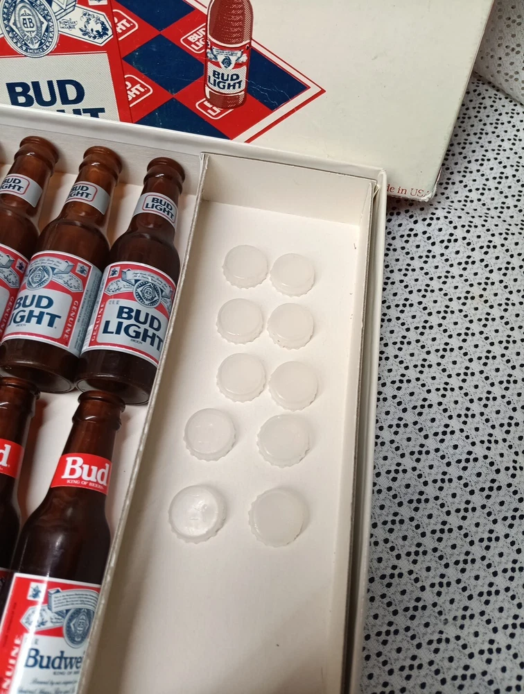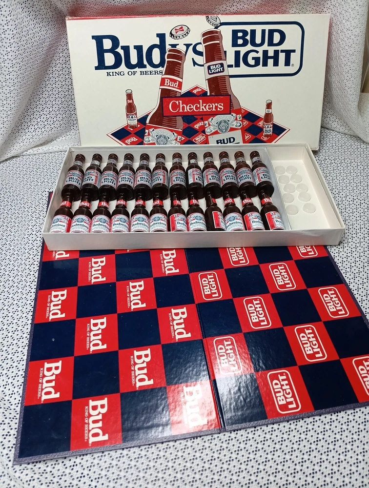 Bud vs Bud Light Checkers Vintage Board Game Budweiser King Of Beers USA. Good Labels, Box slightly worn, 10 Caps/Crowns