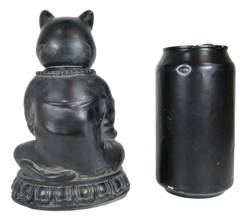 • This Zen Buddha Cat Meditating Statue stands 6" tall, 4.25" long and 3.5" deep approximately. • This Zen Buddha Cat Meditating Statue is made of designer composite resin, hand painted and polished • This content feline Buddhist is a kindred soul traveling the enlightened path. Keep in your home when you are in need of peace or keeping your life balanced. Sitting cross legged depicts the pose of inner peace and with the thumbs and fingers touching helps to create or enhance the flow of energy. • This is an Ebros Gift exclusive collection.