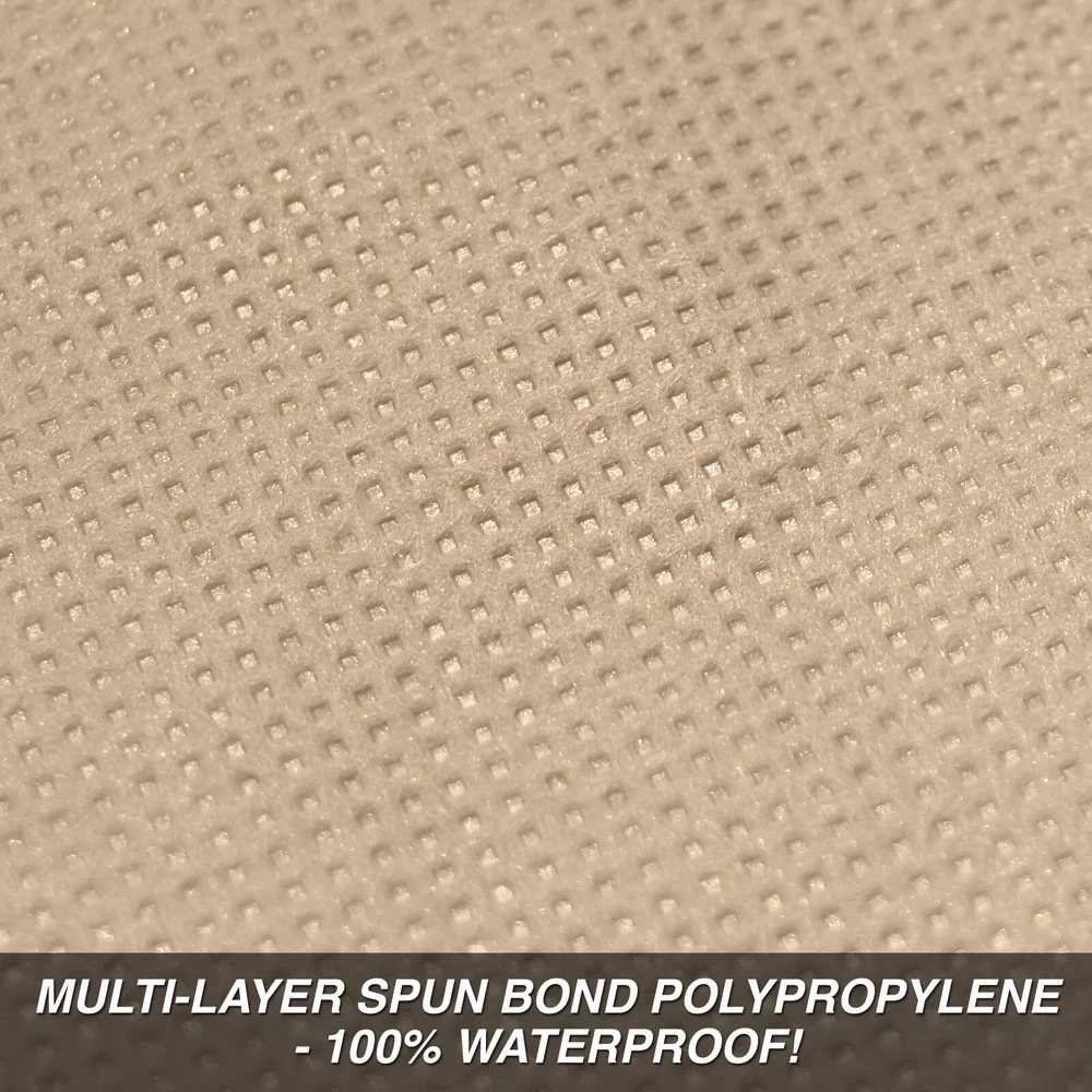 Our Budge Rain Barrier Car Cover Fits Oldsmobile Toronado 1968, Tan. The Budge Rain Barrier car cover offers easy to use, 100% waterproof indoor and outdoor protection. This vehicle cover is constructed from a 3 layer material consisting of an inside and outside layer of spun-bond polypropylene. The middle layer is made from a waterproof film. Unlike most waterproof car covers, the Budge Rain Barrier features micro-pore technology that allows condensation to escape as evaporated gas – giving your vehicle inside and outside protection. This cover is great for outdoor and indoor use. The soft, nonabrasive material will not harm the surface of your vehicle. This cover features a full elastic hem and built-in grommets. This cover is available in a tan color. Includes a storage bag and antenna patch. This Budge Rain Barrier Car Cover Fits Oldsmobile Toronado 1968