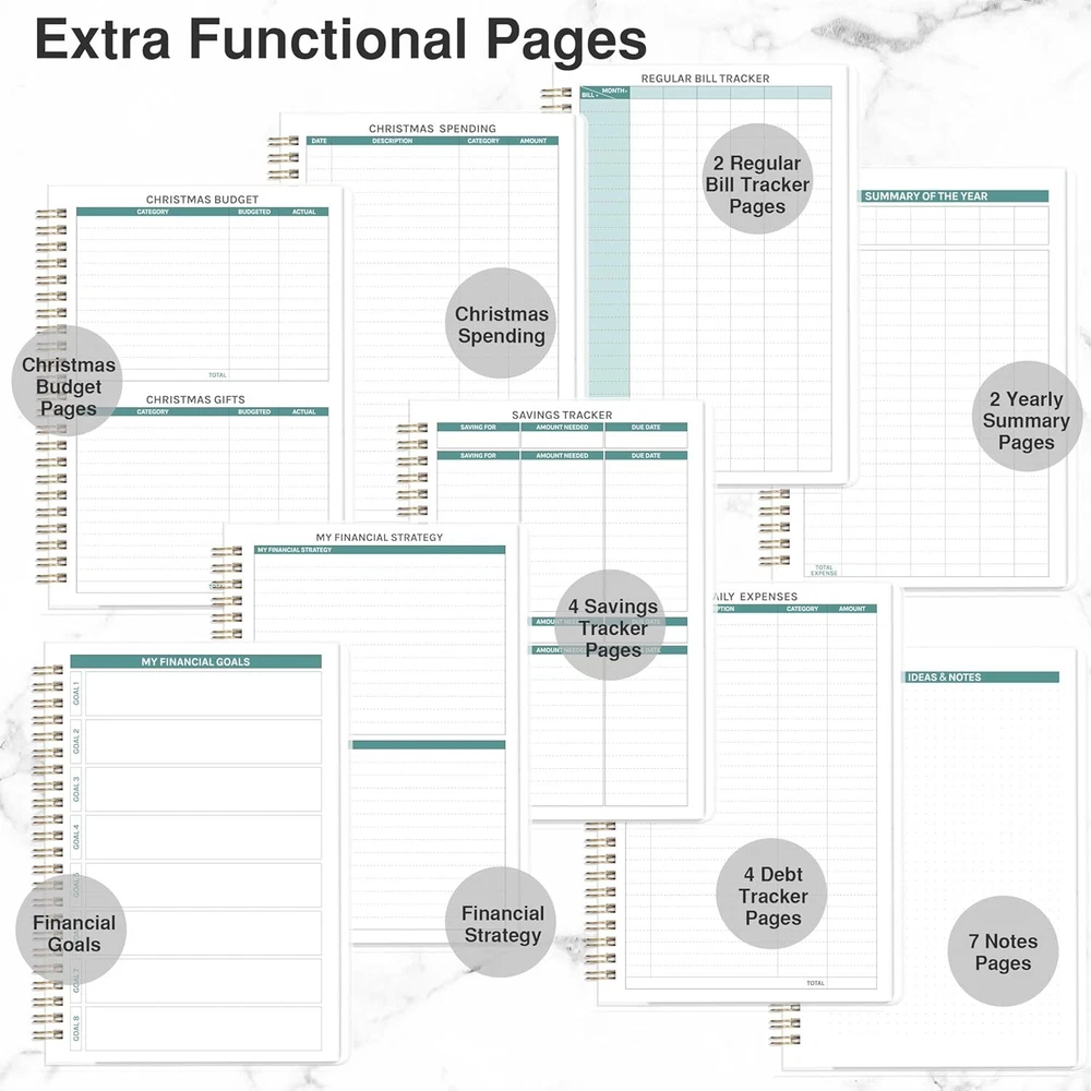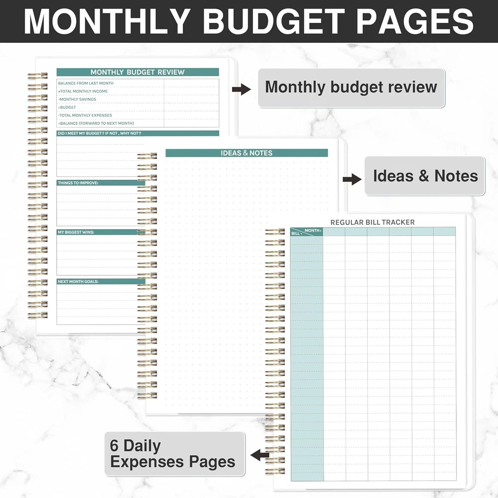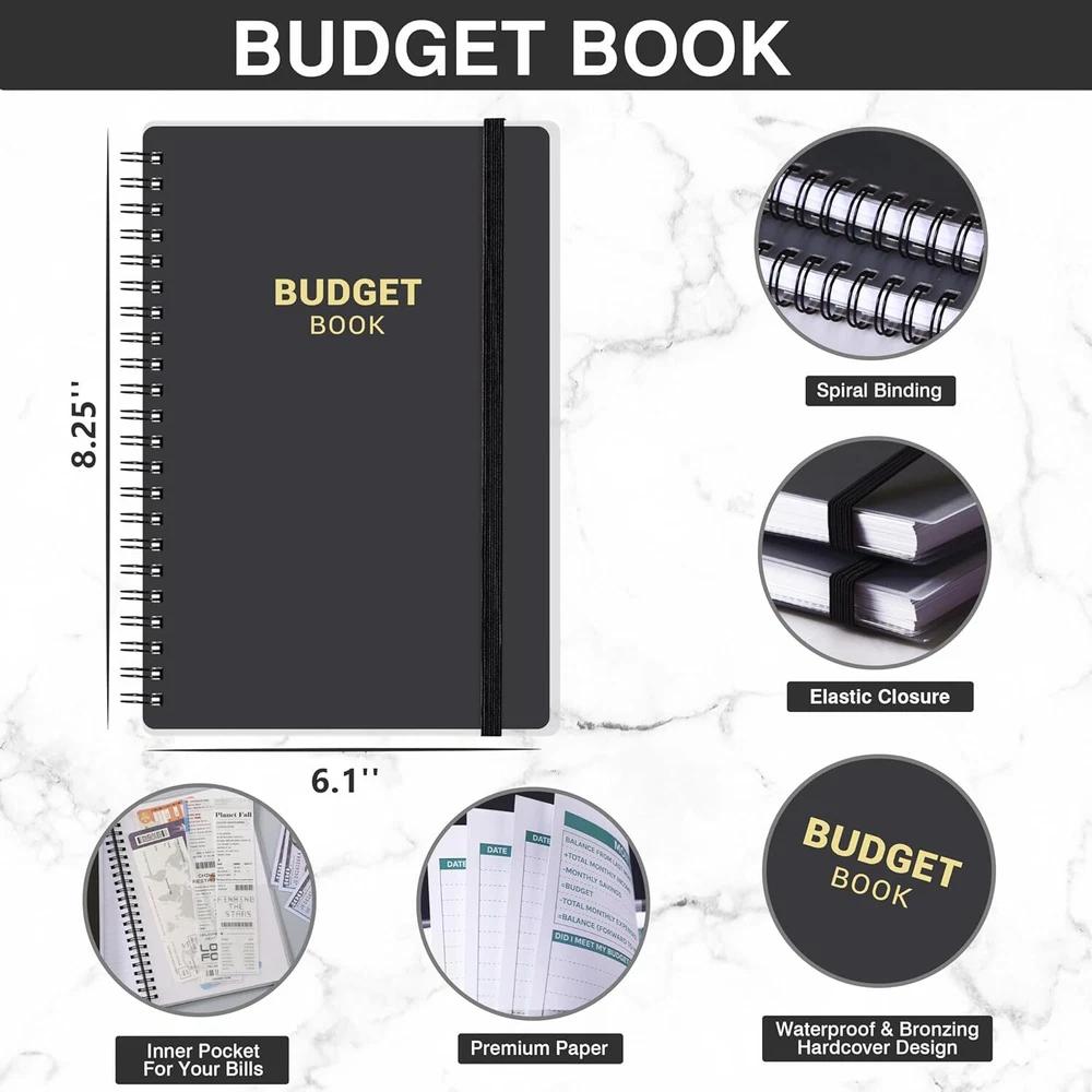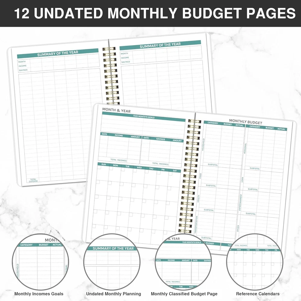 Budget Planner - Budget Book, Undated Monthly Bill Organizer with Pockets, 8.3" x 5.9", Expense Tracker Notebook, Financial Planner/Book with Pocket Product Details Brand: Frasukis Format: Organizer, Notebook Sheet Size: A6 Material: Paper Binding: Unknown Binding Manufacturer: Frasukis Budget Planner - The budget planner allows you to plan and record your daily finances scientifically, so that achieve your financial goals. This budget book can help you to manage your finances throughout the whole year, and help you get your money in order effectively as well as develop winning financial habits. Undated Monthly Budget Planner - The budget planner is an undated planner, which means you can start your financial planning any time for 12 months. The 12-month budget planner page contains not only the monthly planner page, but also 6 daily expenses pages, monthly budget review, and ideas & notes. This budget planner can effectively helps you set and achieve your monthly financial goals and develop your organized financial habits. Extra Functional Pages - The budget planner adds 9 additional functional pages to help you better take charge of your finances, including the financial goals & strategy, 4 savings tracker pages, 4 debt tracker pages, christmas budget pages, 2 regular bill tracker pages, 2 yearly summary pages and 7 notes pages. This budget book can definitely guide you to take control of your money more effectively. Multifunctional Details - Financial Planner | Strong Twin-Wire Binding | Elastic Closure | Inner Pocket | Budget Planner Stickers | Transparent Waterproof Cover | High Quality Thick Paper | Bill Organizer | Monthly Budget Planner | Your Financial Compass Your Financial Compass - This handy A6 budget planner allows you to keep track of your daily income and expenses anywhere and anytime. The budget planner is designed to be easy to use and suitable for everyone to use, especially those who want or need to do financial management. It's more than just a planner, it's a roadmap to financial success.