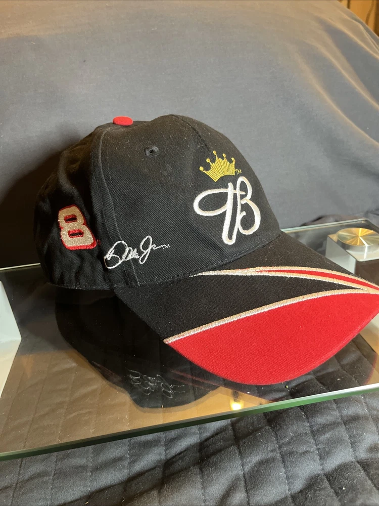 This Budweiser Dale Earnhardt Jr Hat Ball Cap Winners Circle Adjustable Racing #8 is the perfect accessory for any fan of the legendary driver. Made of high-quality cotton material, this baseball cap features an adjustable strap for a comfortable fit. The multicolor design with the Winners Circle logo adds a stylish touch to any casual occasion. Ideal for winter, summer, fall, and spring, this hat is a must-have for any racing fan. Whether you're out for a walk or cheering on your favorite team at the track, this hat is sure to make a statement. Get yours today and show your support for one of the greatest drivers of all time.