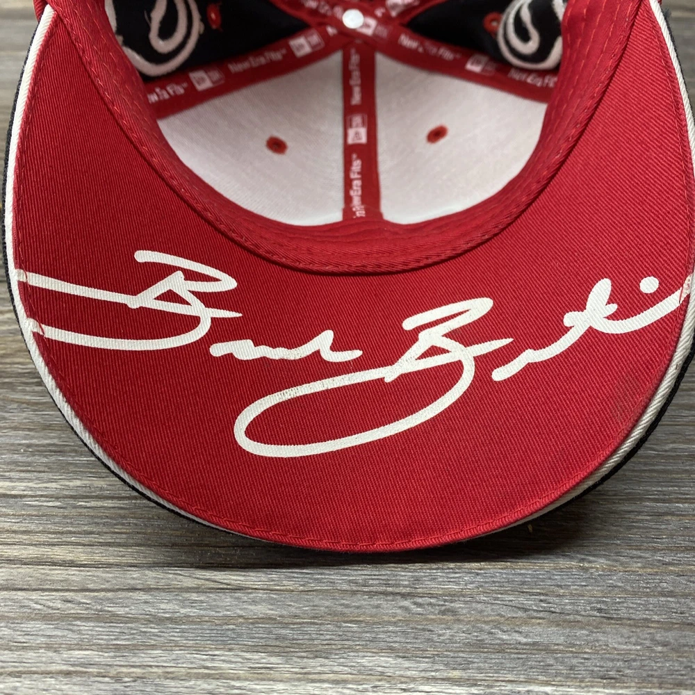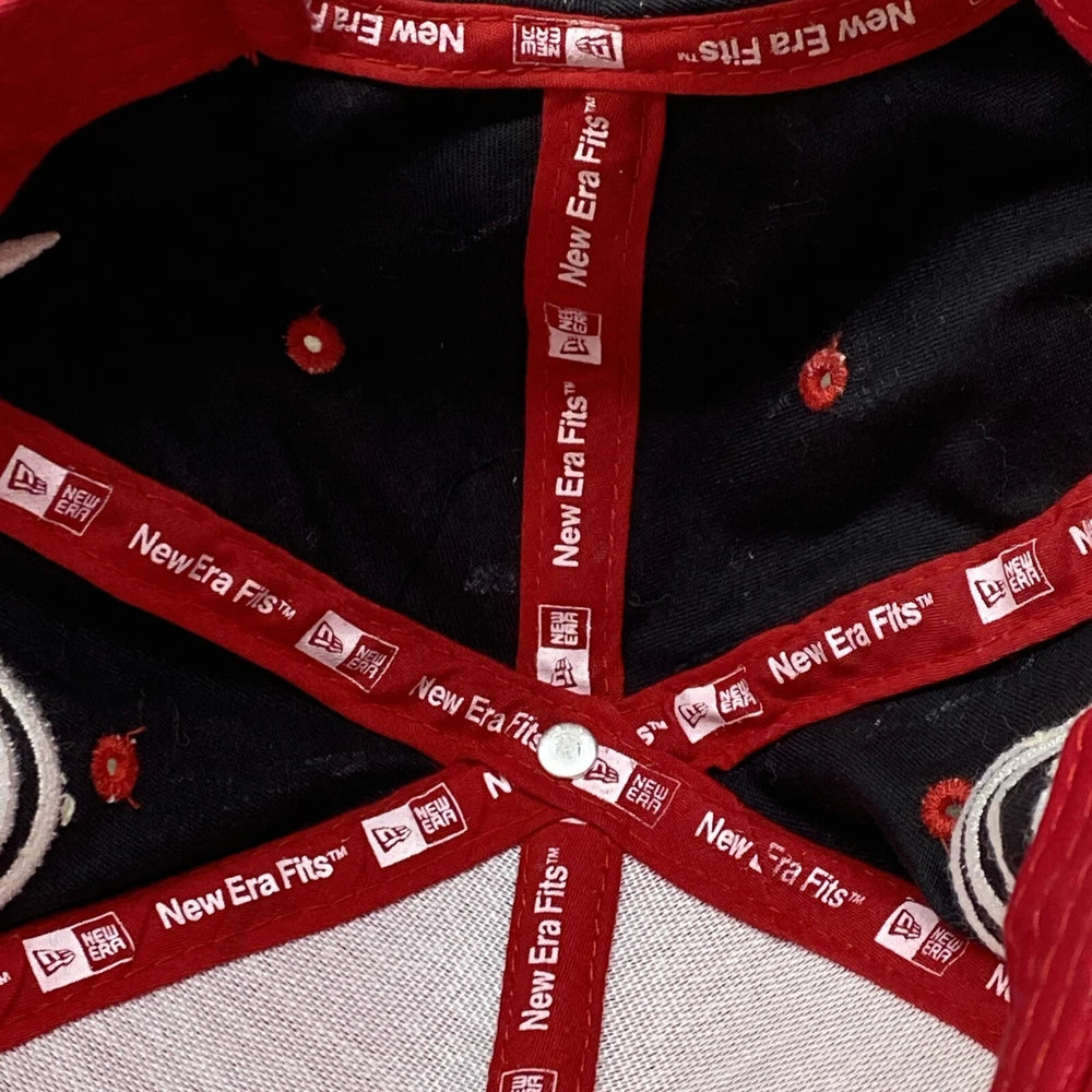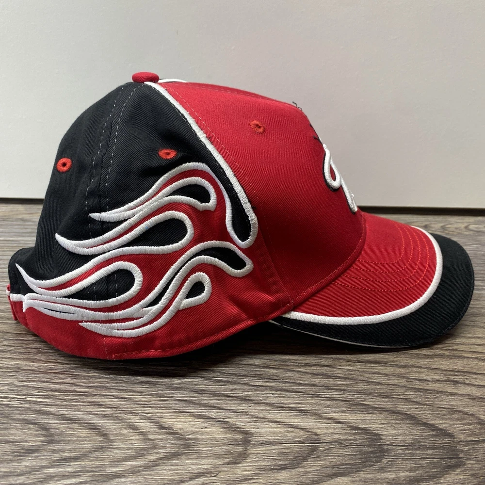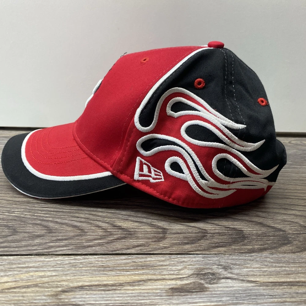 Budweiser King Red Cap Hat New Era Flames with Signature One Size Preowned hat in good condition. Has some wear and fuzz. Please see all photos.