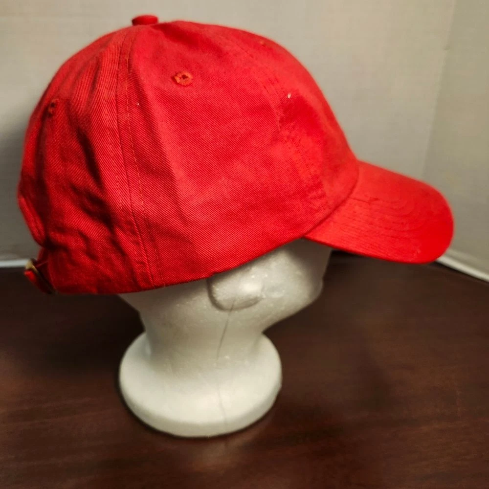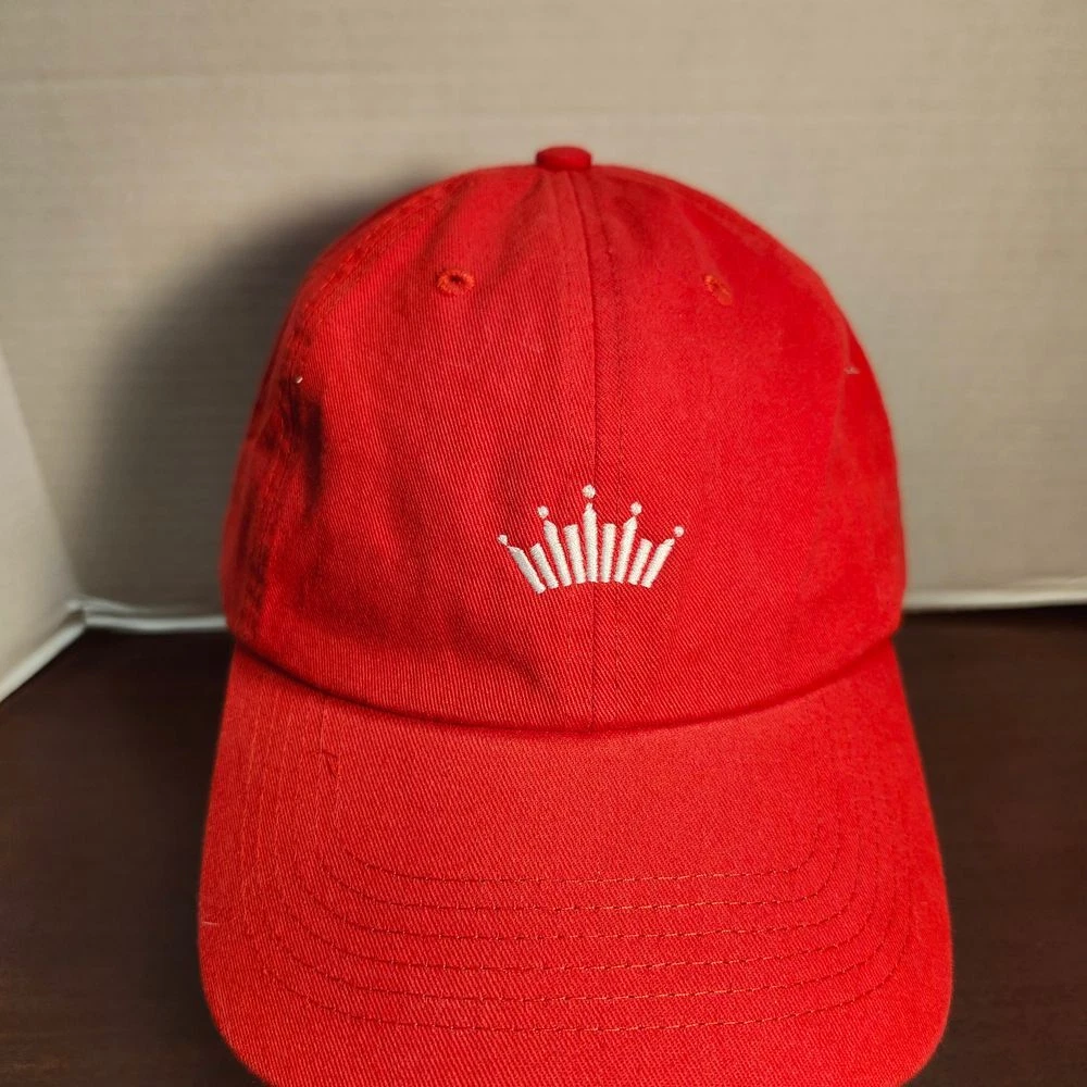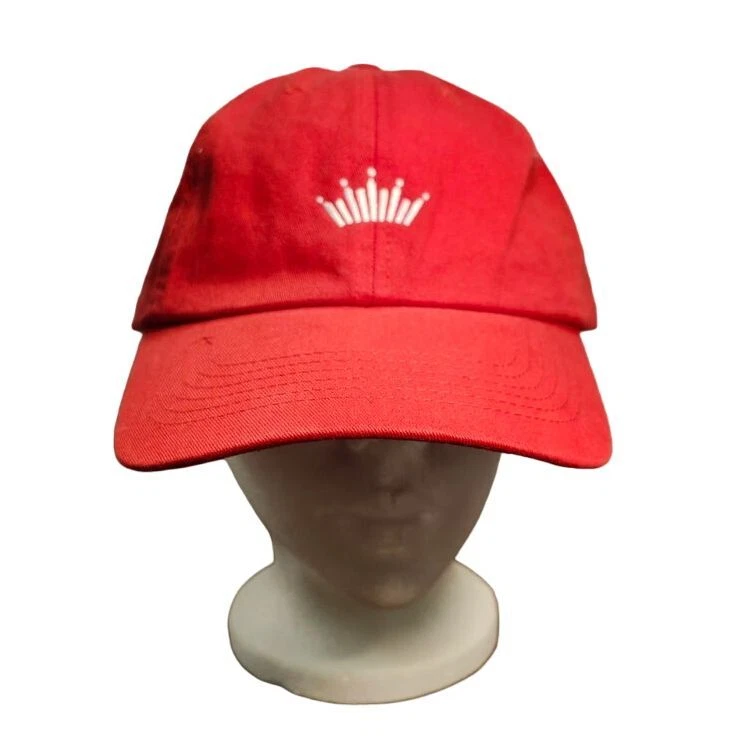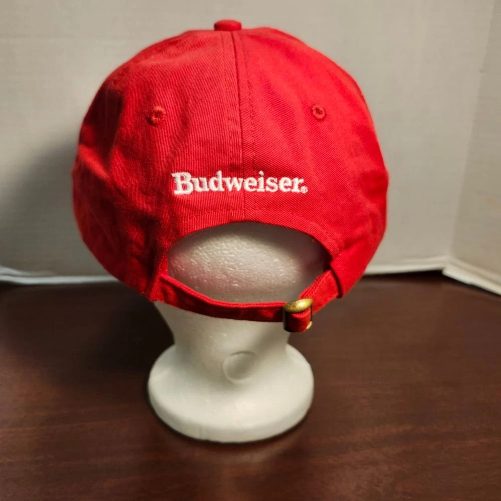 Classic red baseball cap featuring Budweiser's iconic crown logo embroidered in white. Perfect for casual outings, sports events, or summer festivals. This adjustable cotton cap combines style with comfort, making it an ideal accessory for beer enthusiasts and fashion-conscious individuals. The brass closure adds a premium touch. Style: Baseball Cap Color: Red Department: Unisex Adults Features: Adjustable, Lightweight, Breathable Pattern: Solid Material: Cotton Fabric Type: Twill Occasion: Casual Keywords: budweiser cap, red baseball hat, crown logo, adjustable cap, cotton hat, beer merchandise, casual headwear, embroidered cap, branded cap, summer hat