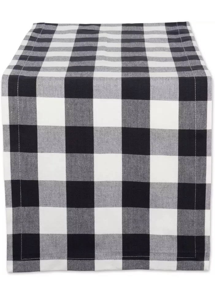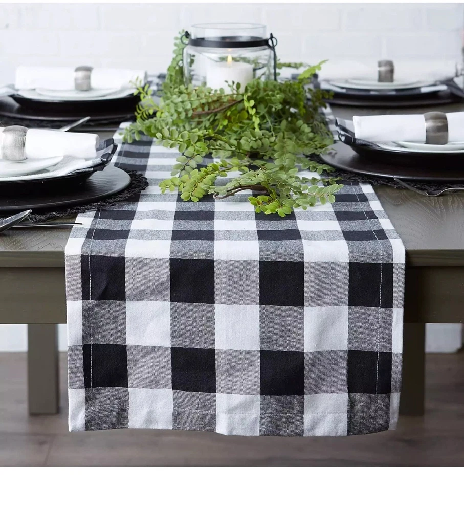 Buffalo Check Collection, Classic Farmhouse Table Runner, 14X108, Black & White. Condition is New with tags. Shipped with USPS Ground Advantage.