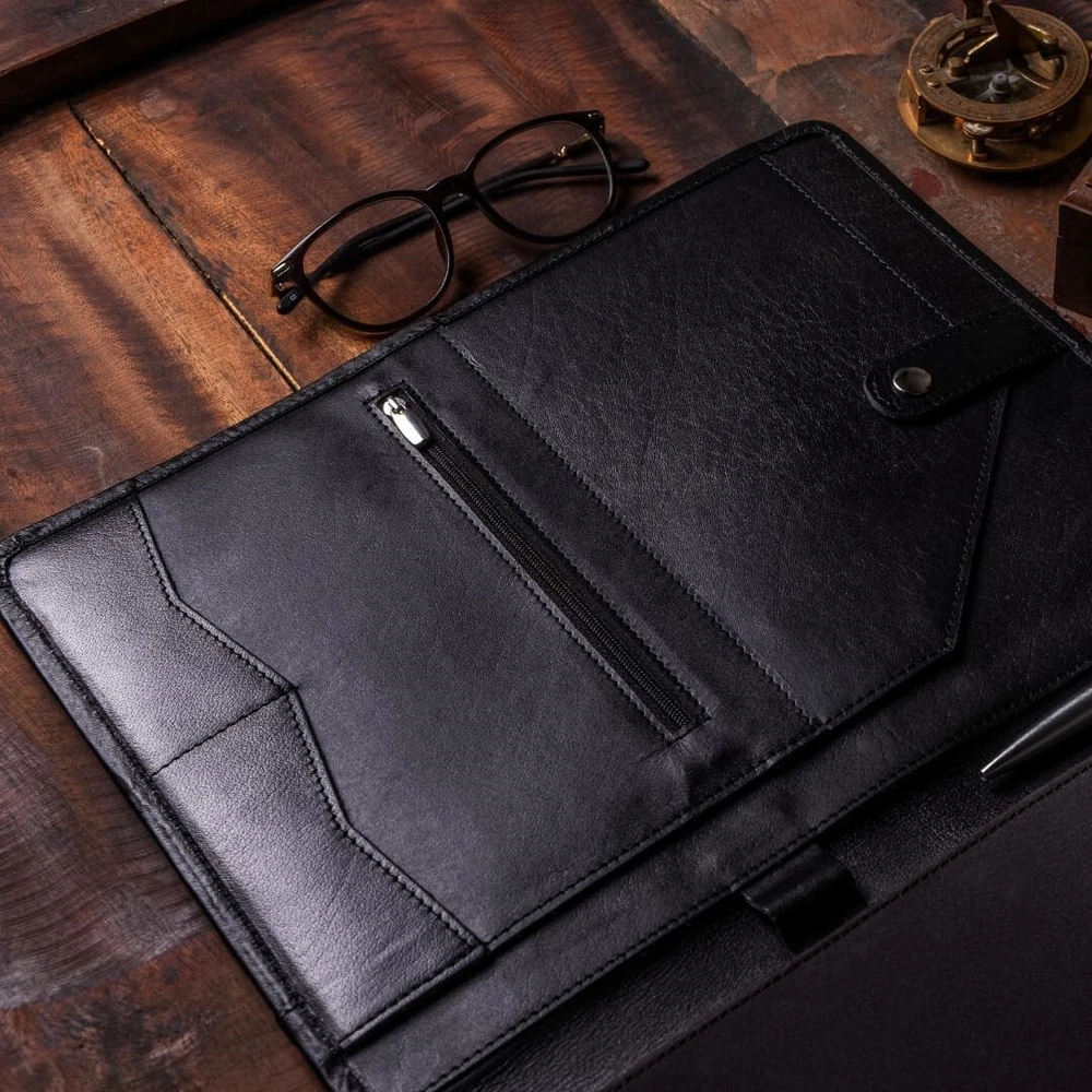 This buffalo leather portfolio is a game-changer for professionals! The supple, high-quality leather feels luxurious and ages beautifully, while the built-in cardholder keeps everything organized. Love the included premium pen—perfect for making a polished impression. The craftsmanship is outstanding, with each piece having its own unique character. Sturdy yet stylish, it’s a timeless accessory that elevates any business meeting. Highly recommend!