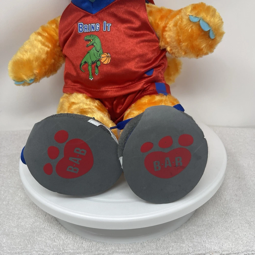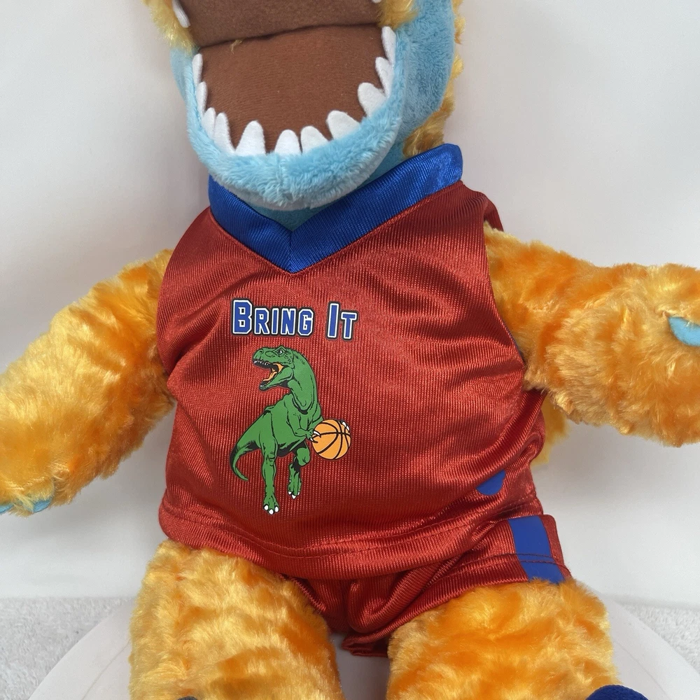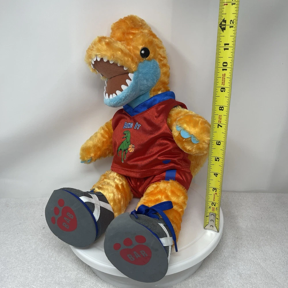 Brand: Build-A-Bear Workshop Character: Brachiosaurus Franchise: Build-a-Bear Eye Color: Black Number of Items: 1 Time Period Manufactured: 2010-2019 Material: Plush Bear Color: Orange Year Manufactured: 2019 Type: Plush Bear Features: Retired, Limited Edition, Machine Washable Item Length: 18 in Antique: No Occasion: All Occasions Animal Species: Dinosaur Vintage: No Theme: Animals Size: 18 in Items Included: Shirt, Shorts, Jersey, Shoes