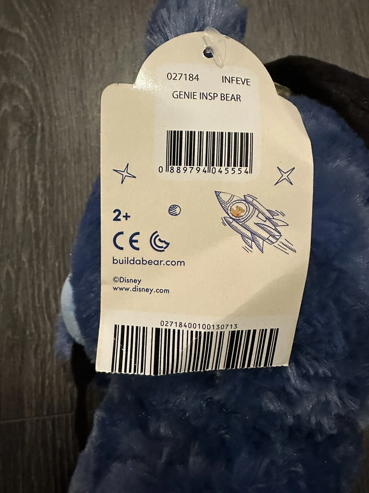 This 16-inch plush toy from Build-A-Bear Workshop features Genie from Disney's Aladdin in his iconic blue color. Made from soft and cuddly materials, this retired collectible bear is perfect for all occasions. The bear's black eyes and friendly expression make it a charming addition to any collection. Ideal for fans of the beloved franchise, this BABW bear is a must-have for any Disney collector. Its unique features and high-quality construction make it a valuable and treasured item. Celebrate your love for Aladdin and add this beautiful Genie plush toy to your collection today. 12-5-24
