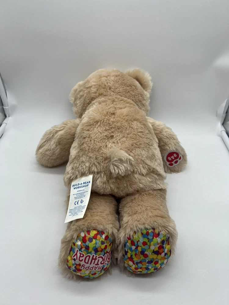 Build A Bear Happy Birthday Light Brown Tan Teddy Bear Plush 15" Stuffed Animal