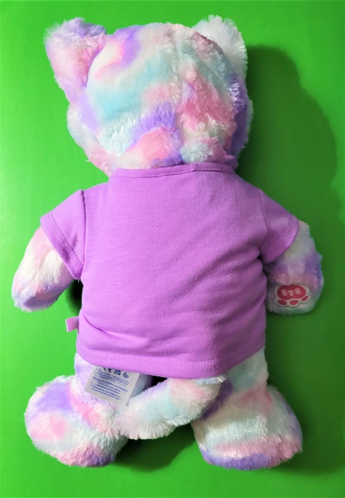 Build A Bear Happy Kitten Tie Dye Pastel 16" Plush with Rainbow T-shirt BAB used in good condition from a smoke and pet free home