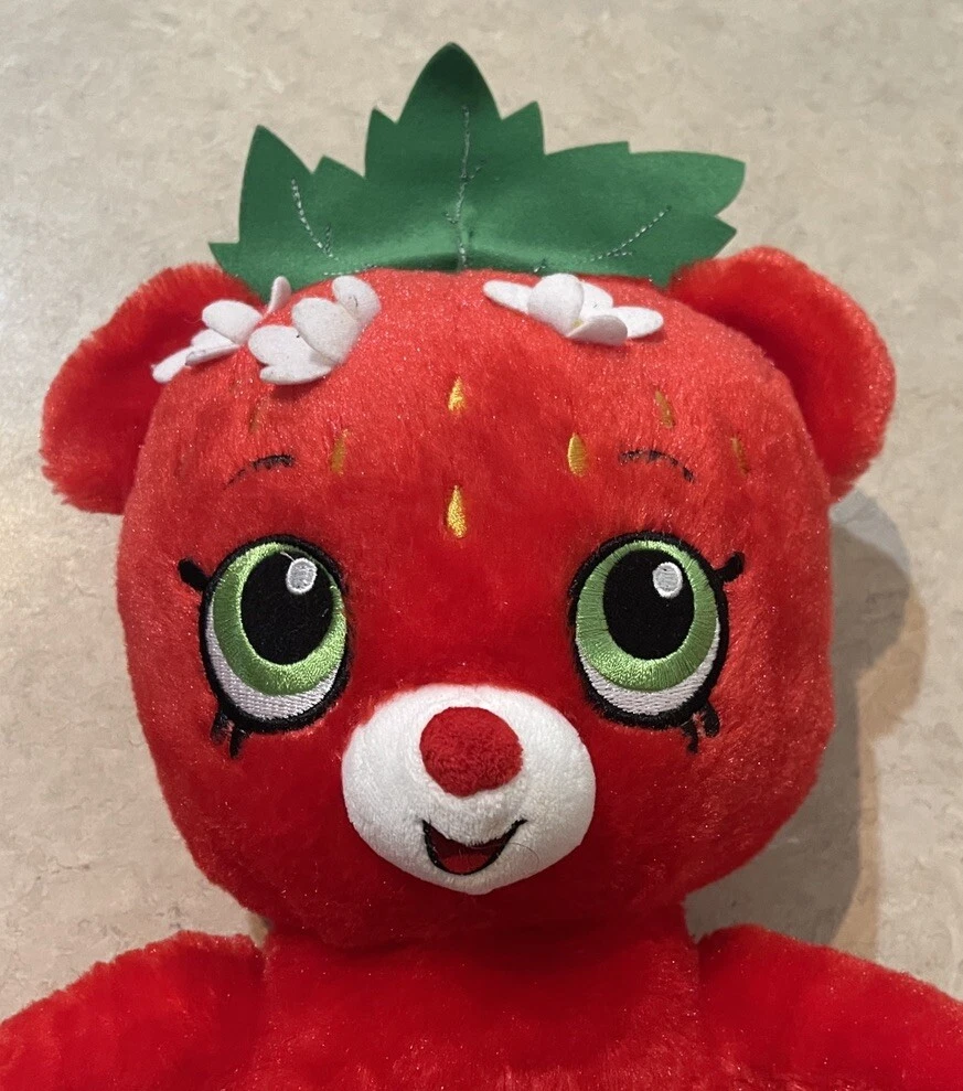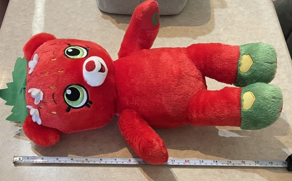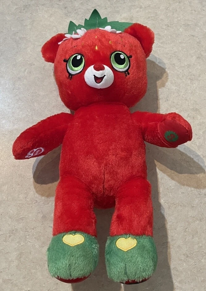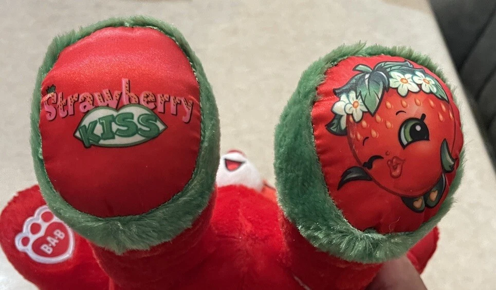 This 18-inch Build-A-Bear Workshop plush stuffed animal is a must-have for fans of Strawberry Shortcake. With its bright red color and green eyes, this original and retired piece is a unique addition to any collection. The stuffed animal is made of high-quality plush material, and it comes without packaging. The Build-A-Bear Workshop Strawberry Kiss plush toy is a single unit that is perfect for bear enthusiasts and collectors. It is an excellent gift for kids and adults alike who love animals and popular culture icons. Add this charming piece to your collection today! This plush is in good preowned condition, with only light signs of wear. Please see ALL photos for a better idea on condition, any measurements, or details to the plush.