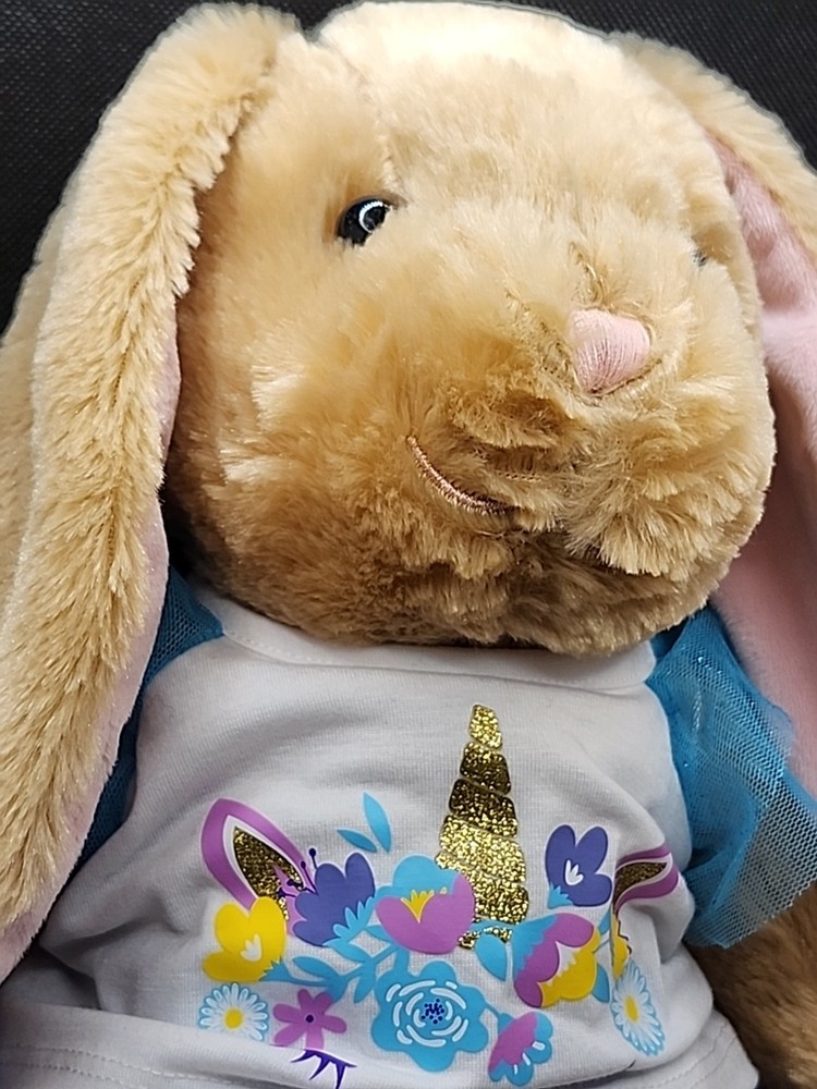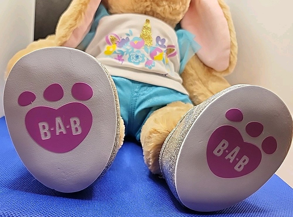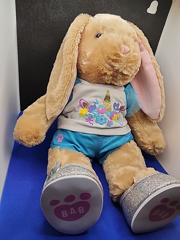 PAWLETTE BUNNY WITH FULL OUTFIT AND SHOES Build-A-Bear Workshop with the delightful Pawlette Bunny Rabbit, a 16" plush SEE PHOTOS! LIGHT BROWN PINK LONG EARS WHITE UNICORN T SHORT SLEEVE SHIRT SILVER GLITTER SHOES LIGHT BLUE METALLIC SHORTS Decked in an adorable outfit complete with a shirt, shorts, and shoes 2018 Spring Collection is an emblem of joy and playfulness, perfect for all occasions. FAST SHIPPING AVAILABLE