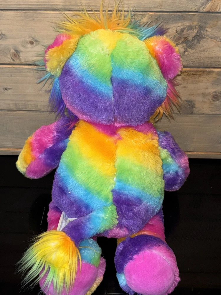The product is a Build-A-Bear Workshop plush stuffed animal from the Rainbow Collection, specifically a 17-inch multicolored lion. It was manufactured in 2016 and is made of plush material. This adorable stuffed animal is a part of the animal-themed collection, perfect for anyone who loves lions or colorful toys.