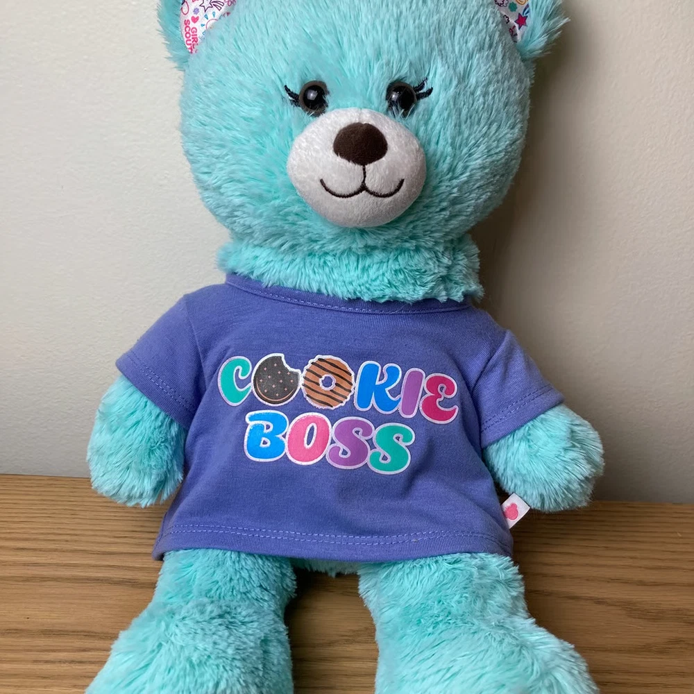Good condition preowned plush with shirt. Shirt has a small stain on back of sleeve (see photos) - have not tried to remove.