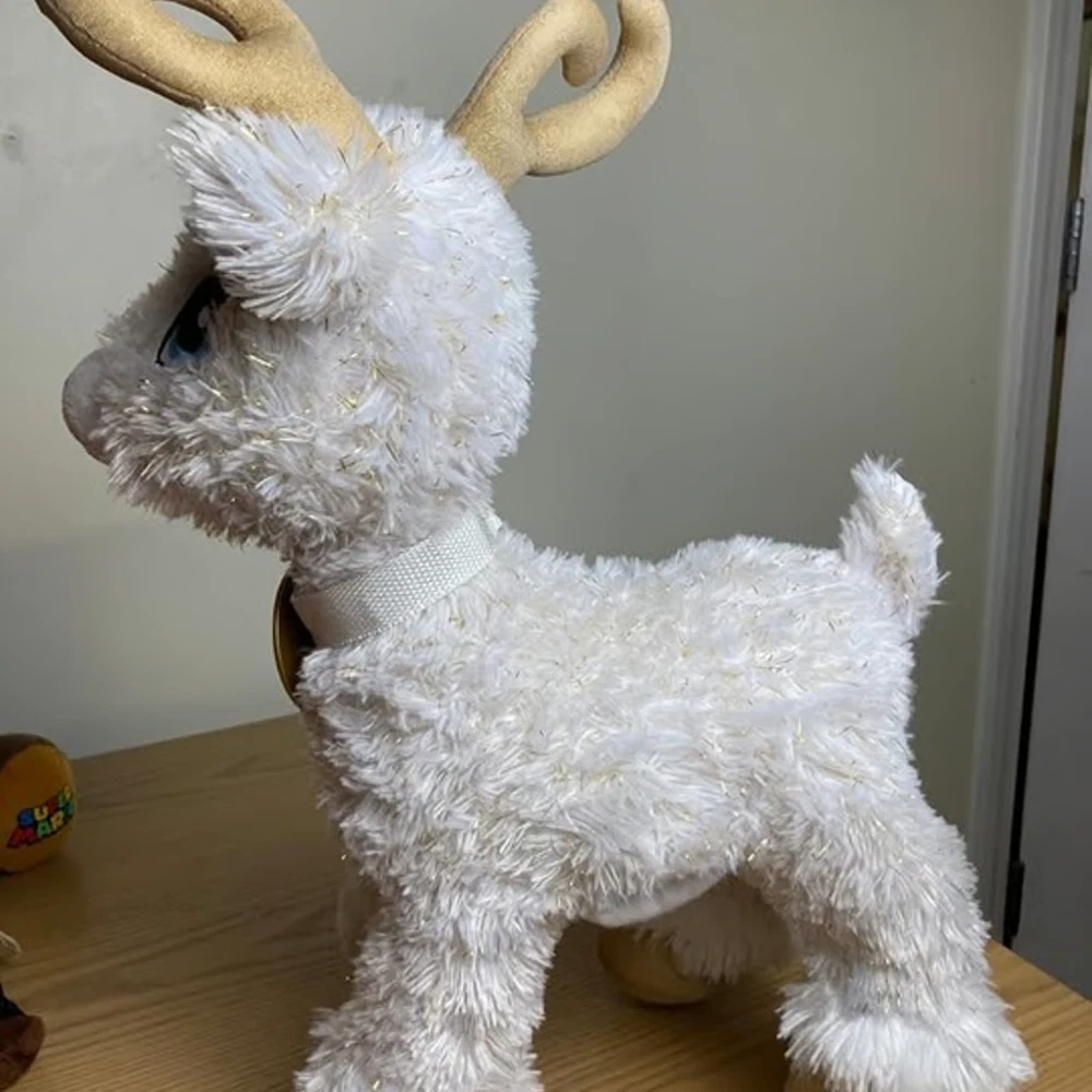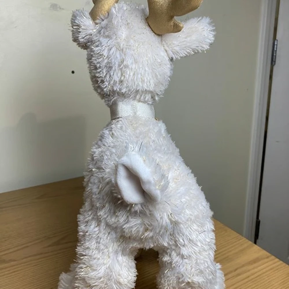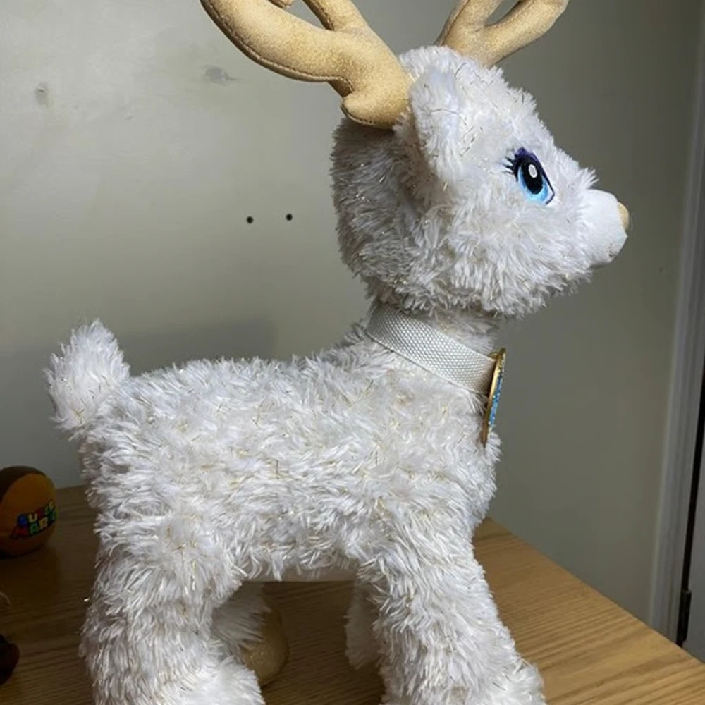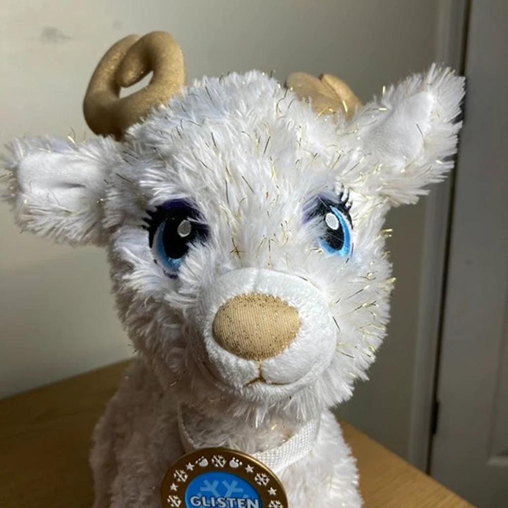 Good condition Build a Bear Christmas Reindeer plush. Has a voice box in front foot that says "Happy Holidays", box in side appears to be out of batteries. Freshly steam-cleaned and ready for a new home!