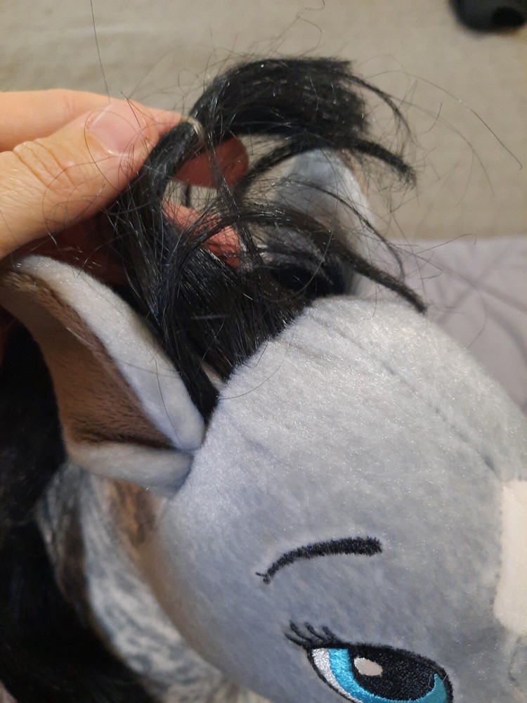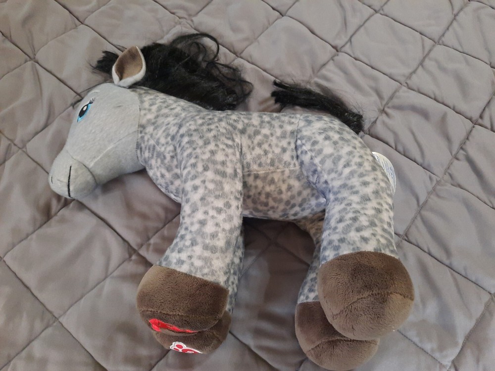 Build a Bear Horses & Hearts Club Appaloosa Gray Dappled Pony BAB Plush Toy. Minor stains on snout. Three plastic hair ties in mane and tail. No hang tag.