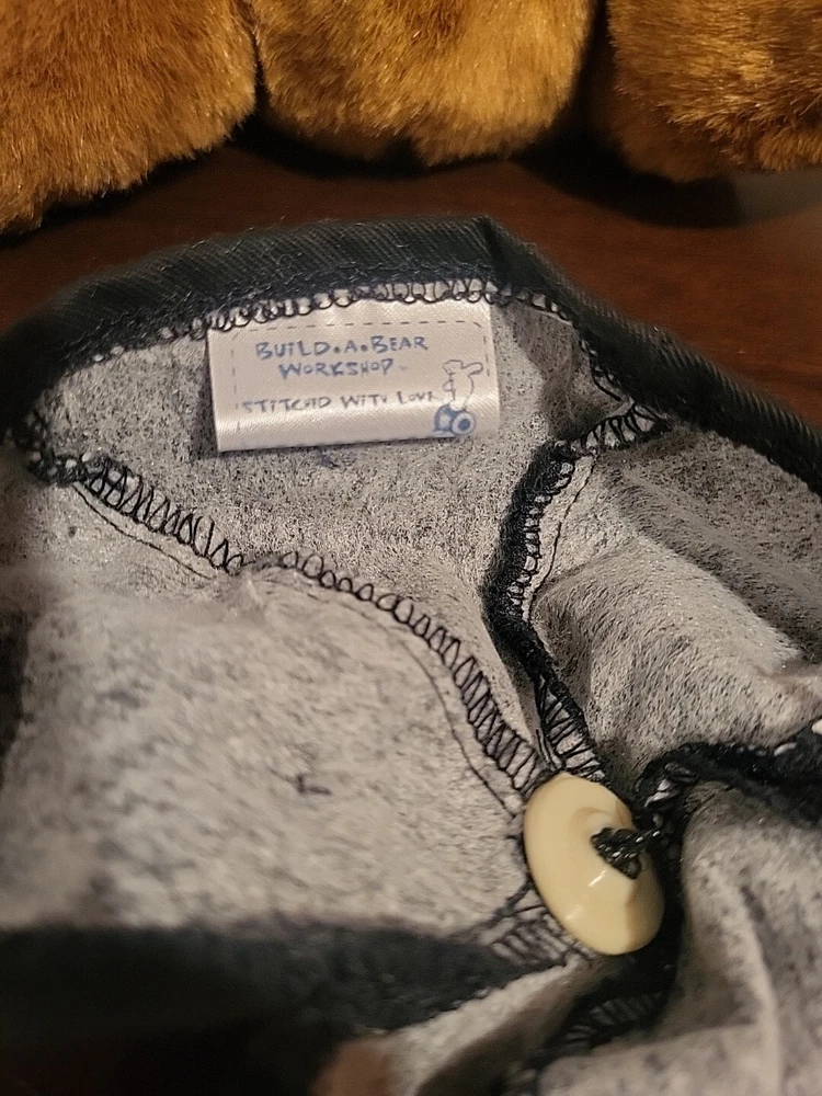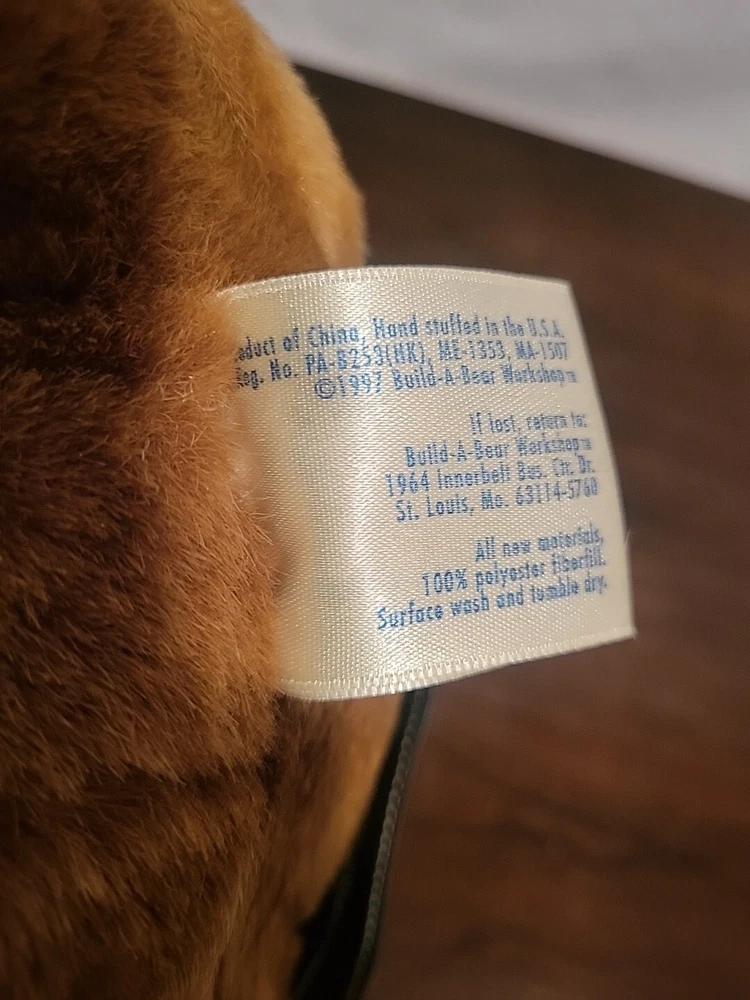 Size:10in.Animal:BearFeatures:VintageEye Color:BlackColor:BrownItems Included:JacketBear Color:BrownModified Item:NoVintage:YesType:PlushOccasion:All OccasionCustom Bundle:NoMPN:PL2Animal Species:BearRecommended Age Range:3+ yearsYear Manufactured:1997Antique:NoBrand:Build-A-Bear WorkshopCountry/Region of Manufacture:ChinaTime Period Manufactured:1990-1999UPC:Does not applyUnit of Sale:Single UnitNumber of Items:1gtin13:Does not applyHandmade:No