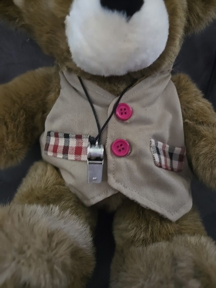 This 16-inch Build-A-Bear Workshop Bearemy brown plush bear is the perfect addition to any collection. This original, licensed reproduction from the Build-A-Bear Workshop franchise comes with a shirt, clothing, and a whistle. The bear's black eyes and polyester material make it a unique and cuddly addition to any occasion. Whether you're looking for a gift for all occasions or just want to add to your collection, this plush bear is perfect for you. Its size of 16 inches and adorable design make it a great addition to any display. Don't miss out on the chance to add this cute and cuddly bear to your collection! C2