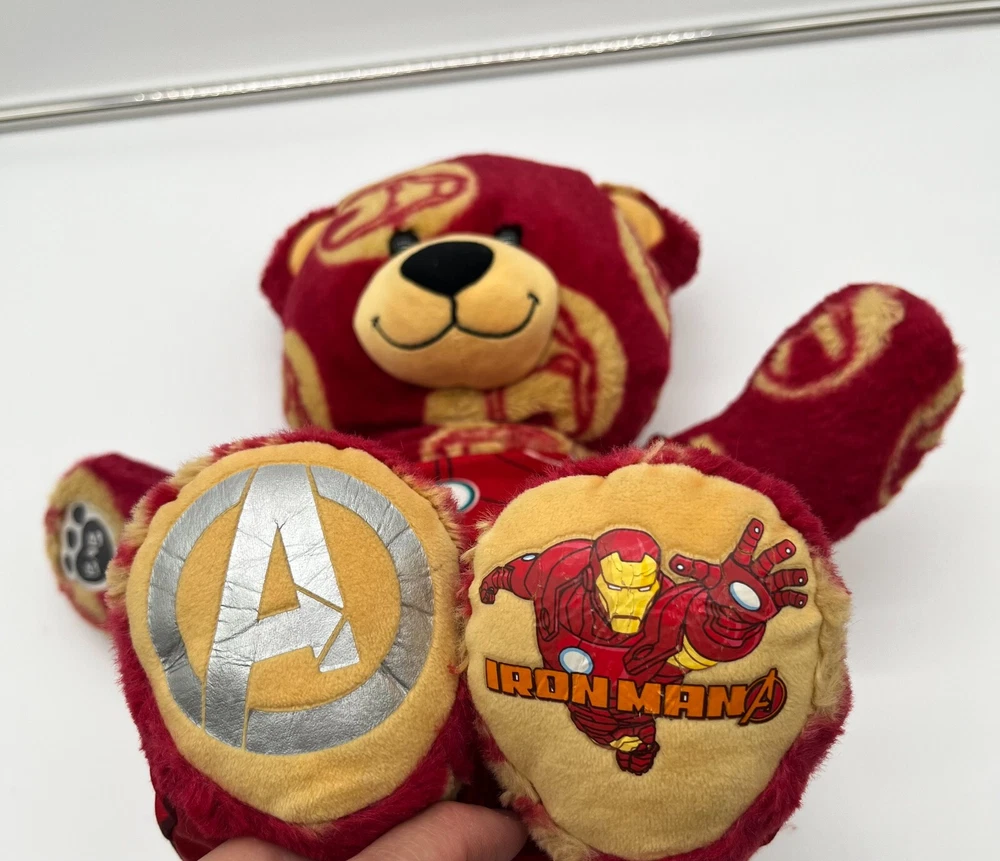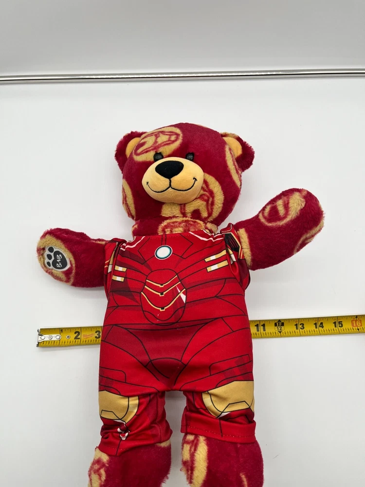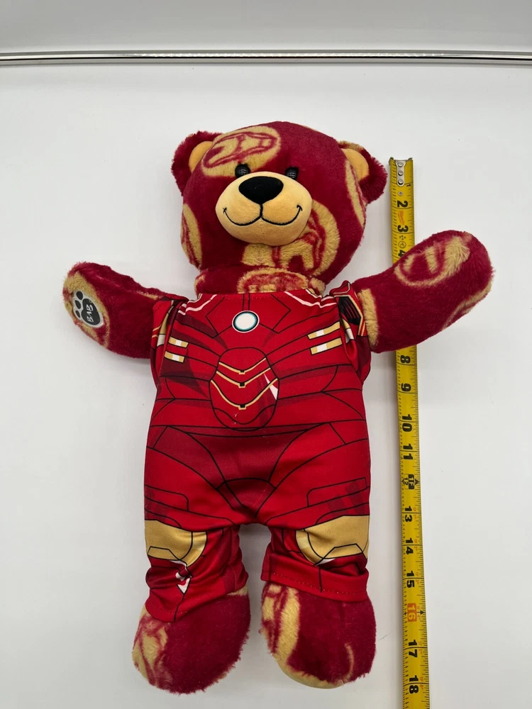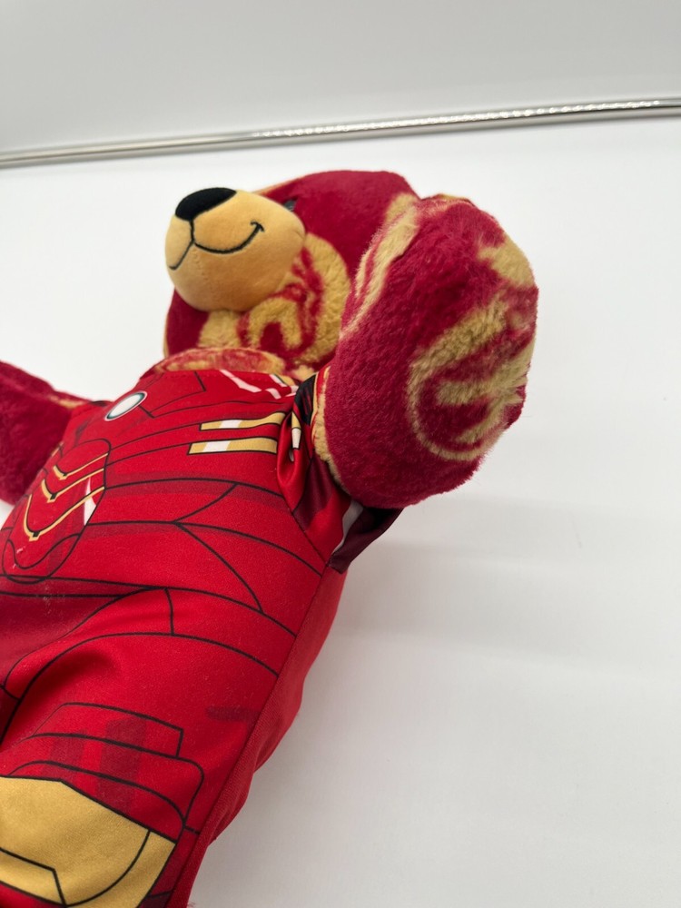 This Build-A-Bear Workshop plush bear is a must-have for any Marvel Avengers fan. The 16-inch Iron Man plush bear comes with the Iron Man clothing set, making it the perfect addition to any collection. The bear's brown eyes and red color give it a unique and eye-catching appearance, while its soft plush and poly material make it perfect for cuddling. The bear is an original, licensed reproduction from the Build-A-Bear franchise and is sold as a single unit. Good Condition. Minor Signs of wear. No stains or smell. FAST, FLAT RATE SHIPPING!