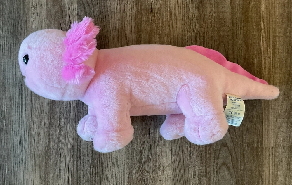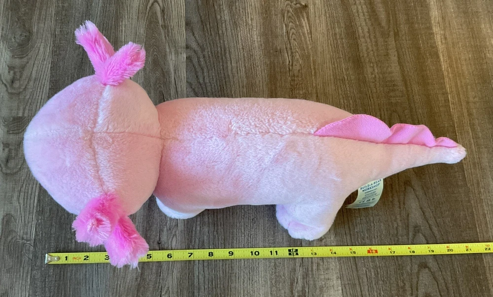 In great used condition. Build a Bear Pink Axolotl Plush. Plush is about 21”. No rips, stains or holes. See photos above.