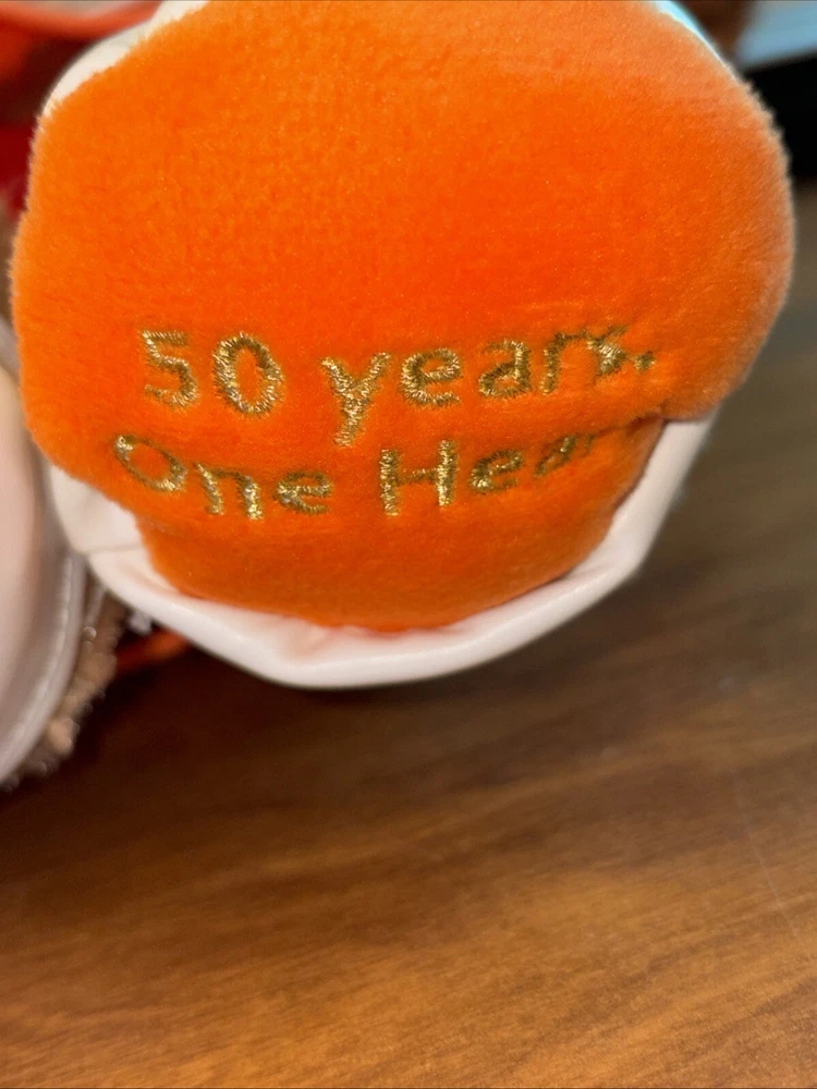This Build-A-Bear Workshop plush bear is a must-have for any collector or fan of Southwest Airlines. Celebrating the airline's 50th anniversary, this brown bear is dressed in a flight attendant’s outfit complete with a shirt, scarf, and shorts. The bear's black eyes and plush material make it a cuddly and unique addition to any collection. This original was manufactured in 2016 and is in excellent condition. With a size of 15 inches, it is perfect for all occasions and would make a great gift for any bear enthusiast. Add this one-of-a-kind Southwest Anniversary Bear to your collection today!