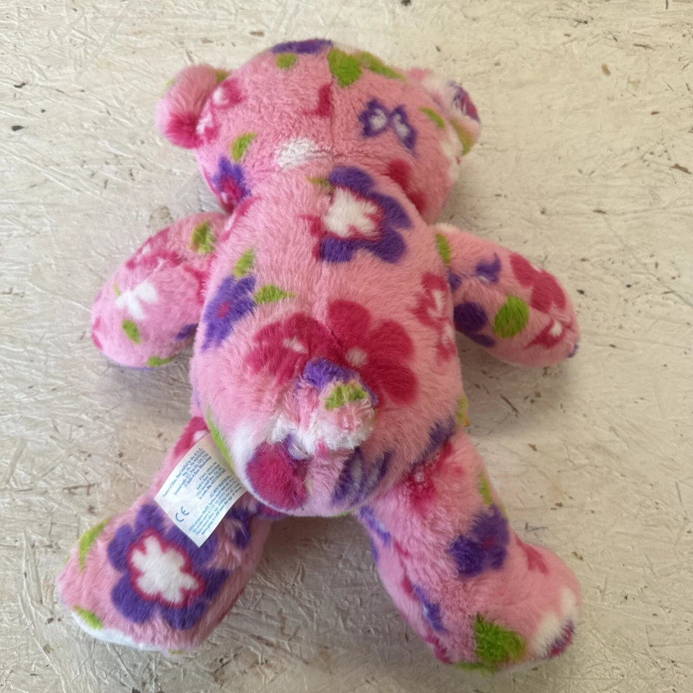 This 15-inch Build-A-Bear Workshop bear is a delightful addition to any collection. The Enchanted Garden Bear set features a pink bear with brown eyes and a multicolor design, along with a Flower Power Rabbit character. The bear is part of the Enchanted Garden collection and is an original, retired piece. It is perfect for all occasions and comes from China with no antique or vintage features. The bear is surface washable and has brown eyes. The item measures 17 inches in length, height, and width, and is an 11-inch bear set. This Build-A-Bear Workshop bear is perfect for anyone who loves floral themes and is looking for a unique addition to their collection.