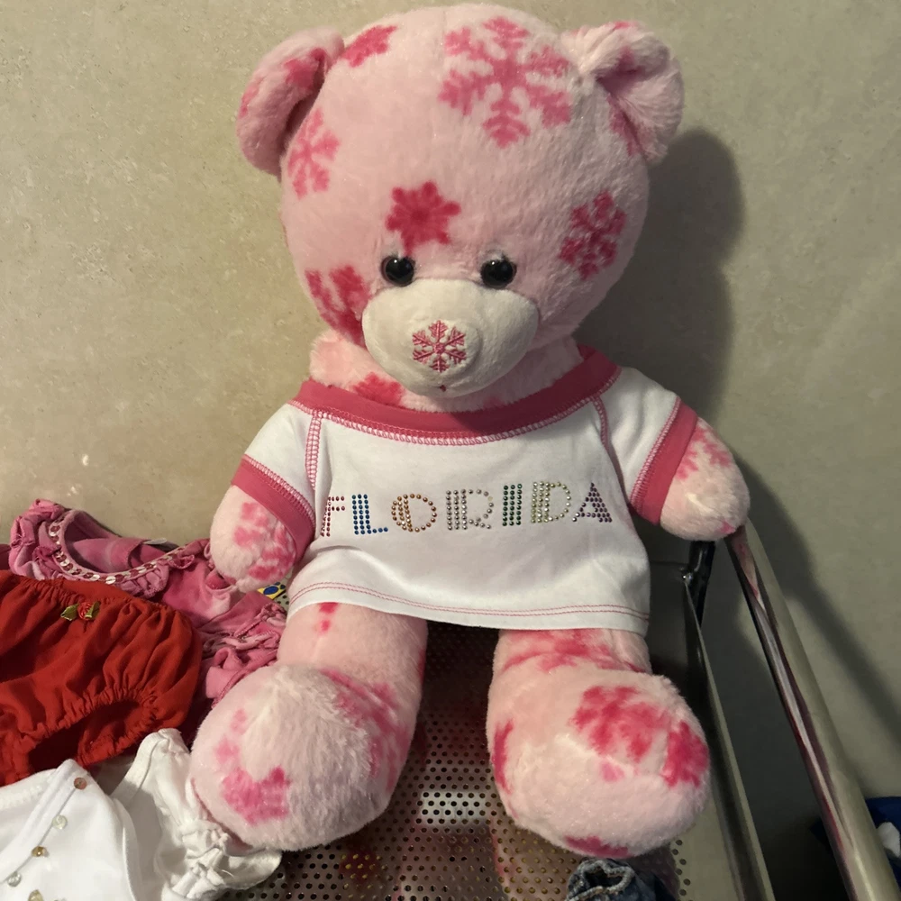 Build-A-Bear Workshop Pink Bear Plush Stuffed Teddy With 10 Pcs Of Clothing