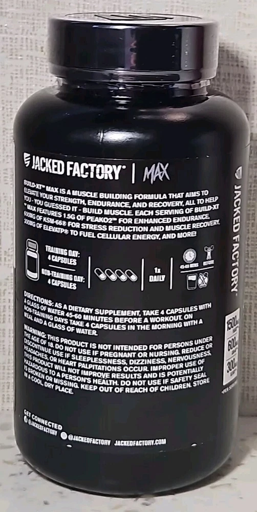 Jacked Factory Build-XT MAX Elite Muscle Builder Improve physique Muscle growth Increase strength Boost ATP Dietary supplement 120 Capsules Exp. Date: 04/2026 NEW & sealed