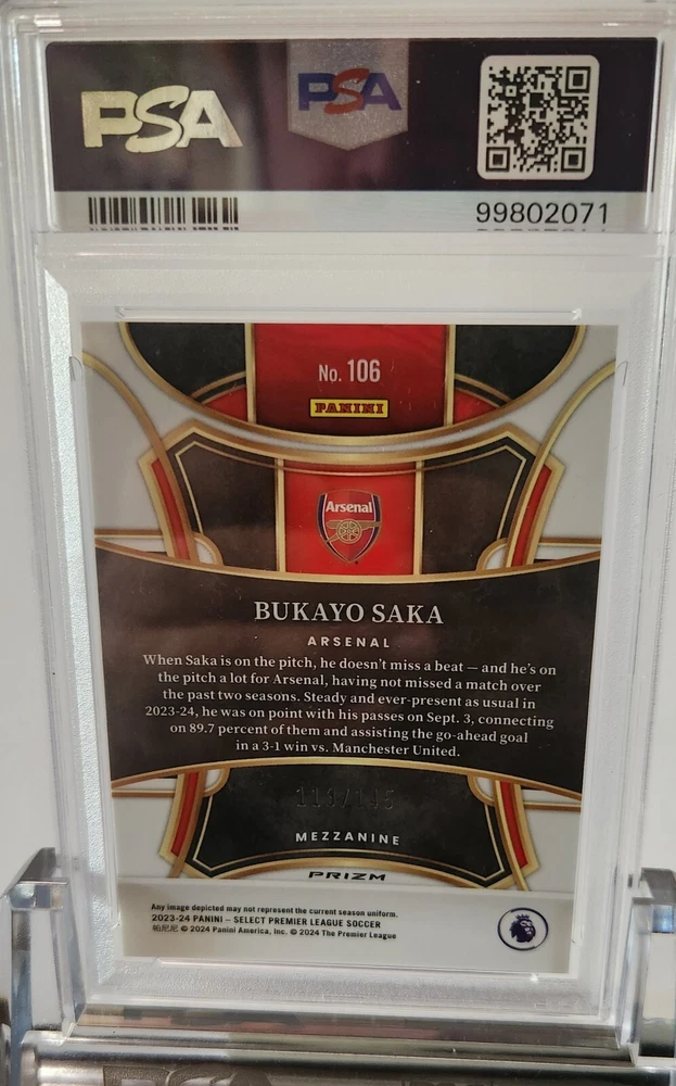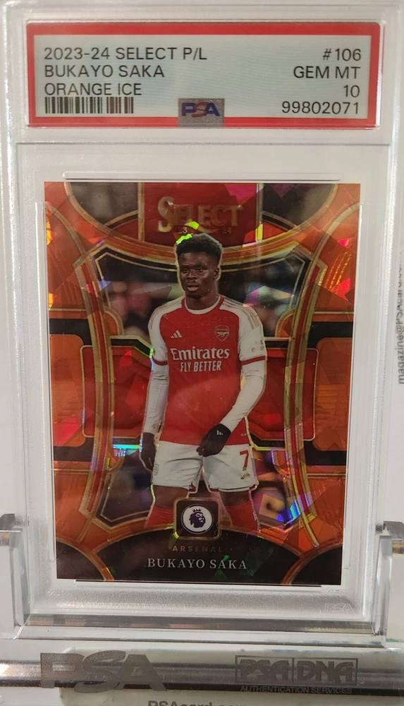 Bukayo Saka, 2023-24 Panini Select Premiere League - Mezzanine Orange Ice Prizm #106 /145 card is pop 1