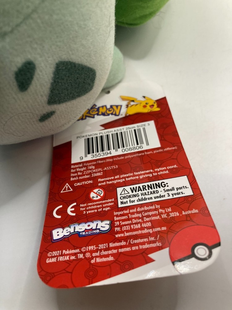 Bulbasaur Pokemon Plush Toy Bensons 2021. L x H: 20 x 17 cms VGC. With tags. Light wear only.