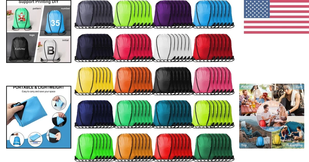 Bulk 120 Count Bright Drawstring Bags – Perfect for Sports, Gifts & Travel ‹ › ‹ › ‹ › ‹ › ‹ › ‹ › ‹ › ‹ › ‹ › Bulk 120 Count Bright Drawstring Bags Unleash your creativity with our vibrant and versatile drawstring bags, perfect for sports, gifts, and travel experiences. Product Features: Support DIY: These cinch bags are blank, allowing you to print any patterns or letters, creating a unique backpack that makes the perfect personalized gift. Variety of Colors: Available in a spectrum of bright, cheerful colors, these bags are well-made and easily distinguishable from one another. Perfect Size: Measuring 41.6cm (16.4 inches) in length and 34.3cm (13.5 inches) in width, these bags are perfectly sized to carry shoes, bottles, basketballs, umbrellas, books, sneakers, clothes, snacks, and other daily necessities. Folding & Lightweight: Our drawstring backpacks are lightweight and portable. Simply pull both sides of the string outward to transform it into a backpack and tie it up securely to keep items in place. Sturdy Material: Crafted from washable polyester fabric, each bag features reinforced bottom corners with triangle PU leather and two metal grommets, ensuring durability against daily wear and tear. Multiple Uses: These bags are ideal for giveaways, activity bags, or party gift bags. Use them for trips, camping, gym sessions, outdoor sports, yoga, outings, dancing, hiking, team training, beach days, or even as handy knapsacks when biking or picking up groceries. Why Choose Our Bright Drawstring Bags? Elevate your gifting and organizing experience with our Bulk 120 Count Bright Drawstring Bags. Not only are they functional and stylish, but they also encourage personalization, making your gifts genuinely unique. Their durable construction means you can rely on them for a multitude of activities, whether you’re heading to the gym, camping, or just in need of a reliable bag for daily use. Experience the convenience and vibrance today – order your set of Bulk Bright Drawstring Bags and let your creativity shine! Shipping Free & Fast Shipping - We offer free shipping to most of the USA with a normal delivery time of 3-7 days. However, due to the current situation, additional delivery time (up to 3 weeks) may be required for some items. Alternative Carriers - We may use alternative carriers (e.g. USPS, FedEx, UPS, etc.) to ensure your package arrives safely and on time. Due to the use of multiple carriers, we are unable to provide a tracking number automatically. Handling Time - Orders are processed and shipped within 1-2 business days of receiving cleared payment. Shipping Restrictions - Shipping to Alaska, Hawaii, Puerto Rico, Guam, and other US territories may incur shipping charges or delivery restrictions. Please contact us before ordering, or your order can be refunded/cancelled. State Restrictions - There may be restrictions based on your state of purchase. For example, certain items may not be shipped to California due to state regulations. Contact for Tracking Updates - If you require tracking updates or have any concerns about the delivery of your order, please feel free to contact us, and we will be happy to assist you. Return 30-Day Hassle-Free Returns - We want you to be completely satisfied with your purchase. If you are not, you can return the item within 30 days of receiving it for a full refund or exchange. Easy Return Process - To start a return, simply contact us and we will provide you with a prepaid return shipping label and detailed instructions. Restocking Fee - There are no restocking fees for returns. However, the buyer is responsible for return shipping costs if the return is not due to a seller's error. Refund Processing Time - Refunds will be processed within 5 business days of receiving the returned item in its original condition. Payment We accept all major credit cards, PayPal, and Apple Pay for your convenience. Your payment information is secure and encrypted to ensure a safe and seamless transaction. Please complete your payment within 3 days of purchase to avoid any delays in shipping. Feedback Your feedback is extremely important to us. We strive to provide the best products and customer service possible. If you are satisfied with your purchase, please take a moment to leave us a positive review. If you have any concerns or issues with your order, please contact us before leaving negative feedback. We are committed to resolving any problems and ensuring your satisfaction. Contact Us If you have any questions or concerns, please feel free to reach out to our customer support team. You can contact us through the eBay messaging system. We are available Monday to Friday, 9:00 am to 5:00 pm EST, and we will do our best to respond to your inquiry within 24 hours. Buy it now and enjoy a pleasant shopping experience! UPC: Not Set Strap Drop: Drawstring Backpacks Unit Quantity: 120 Material: Polyester,PU Leather Theme: Sports Lining Material: Drawstring Backpacks Features: Folding,Lightweight Handle/Strap Material: Polyester Character: Not Set Closure: Drawstring Customized: No Occasion: Casual,Trip,Gym,Party,Camping,Hiking,Dance,Yoga,Team Training,Beach Brand: Unbranded Style: Drawstring Bag Department: Drawstring Backpacks Color: Multicolor Size: Medium Pattern: Not Set Bag Width: Not Set Bag Height: Not Set Bag Depth: Not Set Product Line: Not Set Fabric Type: Not Set Country/Region of Manufacture: Not Set Hardware Material: Not Set Handle Style: Not Set Model: Not Set Year Manufactured: Not Set MPN: Not Set Unit Type: lb Vintage: Not Set Handmade: Not Set Personalize: Not Set