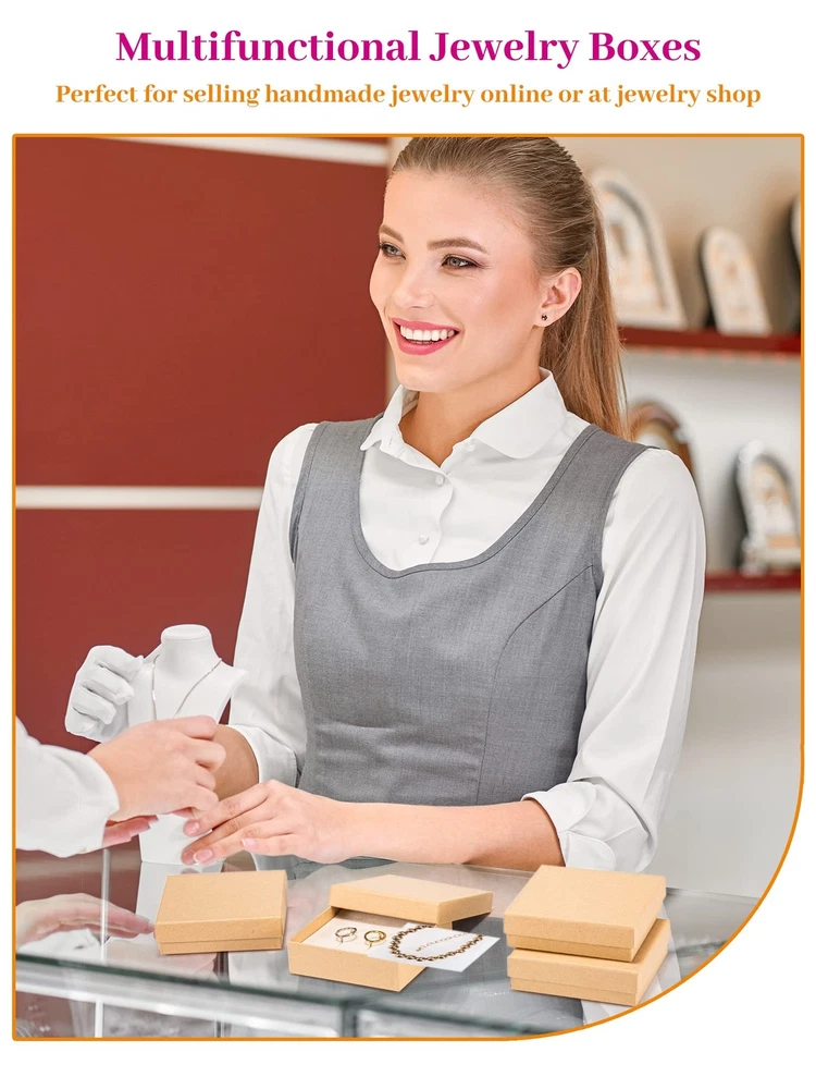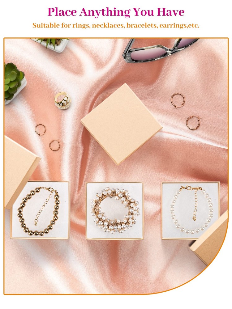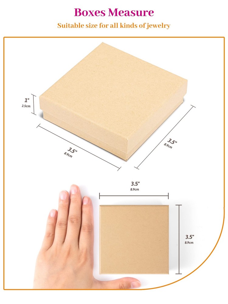 Box for Delicate Things Many times we have had something shipped to us and it arrives in a damaged condition. It is disappointing to find something you are looking forward to using reach you broken or unusable. Now, make sure that all your delicate items are packed safely and securely in cardboard boxes. These gift boxes for jewelry are specially constructed to keep and ship delicate items like glass, crystal, figurines, etc. The cardboard jewelry box bulk is made with 1.1 mm thick cardboard paper and does not bend or lose its shape easily. Is hard to tear and twist. The box comes lined with a layer of cotton fiber to nestle the item and prevent it from damage. The plain gift boxes come unadorned and ready to be personalized to your specification. If you run a business in retail items that are delicate and need to be protected, these boxes are ideal for you. You can print, paint or stamp your business logo and message on top of these boxes. They can be painted, embossed, or decorated according to your taste. They are also excellent for crafts. Use them as gift boxes or as storage boxes for your delicate pieces or decorations. Gift Box For Jewelry:Each gift box for jewelry measures 3.5x3.5x1 inch, pack of 96 jewelry boxes filled with cotton.This jewelry box offers spacious storage without taking up too much desktop space. Ideal for home use or travel, meets the needs of various scenarios. Sturdy Cardboard Jewelry Boxes:Each small jewelry gift box has a cotton-filled plush interior that effectively protects your jewelry from scratches and wear and tear, keeping your jewelry looking like new at all times.The mini gift box is made of 1.1 mm thick cardboard paper and will not bend or lose shape easily, is hard to tear and twist. The jewelry shipping box is lined with a layer of cotton fiber to nestle the item and protect it from damage. The natural cotton fiber is non-reactive and will not discolor. Small Gift Box Wtih Lids:This jewelry box adopts the classic clamshell design style, with a simple and generous appearance, suitable for a variety of decoration styles. Whether it is placed on the dresser or bedside table, it can show nobility and taste. Jewelry Gift Boxes For Women:This jewelry box is not only practical, but also has a high value, making it an ideal gift for family and friends. Whether it's a birthday, Christmas Day, Valentine's Day, Mother's Day or a special anniversary, this jewelry box is an ideal gift for your friends and family. Its elegant appearance and practical features are sure to win their love and appreciation. The exquisite packaging adds to the thoughtfulness and is perfect for expressing your feelings and blessings. Multifunctional Jewelry Boxes:Conveniently store different types of jewelry such as rings, necklaces, earrings and bracelets. No more worries about jewelry storage, everything is in order and easier to access. Avoid tangling and loss of jewelry. Whether it's rings, necklaces, earrings or bracelets, you'll find the right place. Perfect for selling handmade jewelry online or at booths, fairs and conventions. Give your products a classy and professional look with these simple cotton-filled jewelry boxes for sale. Easily customize each jewelry box with stamps or stickers and build your brand.