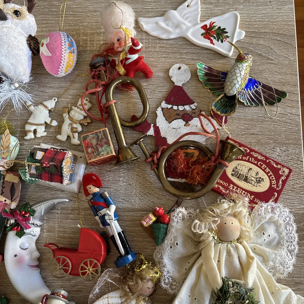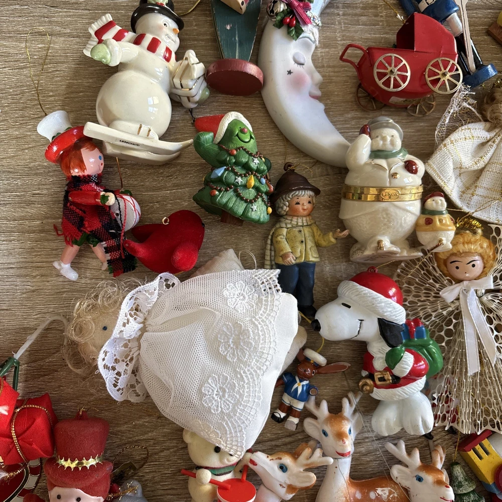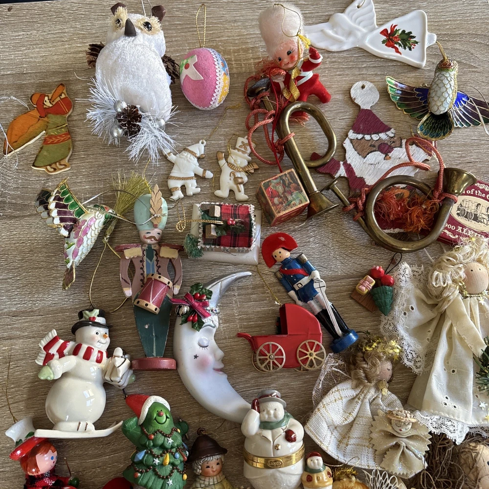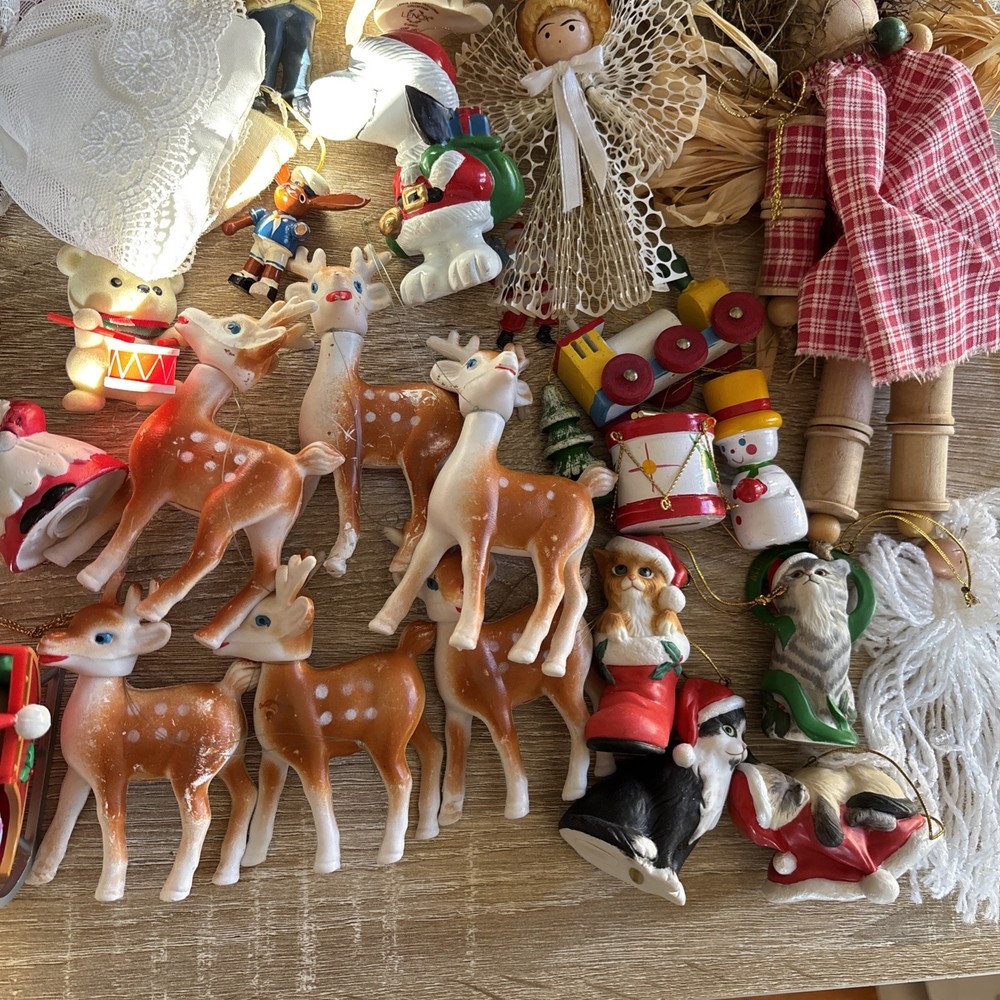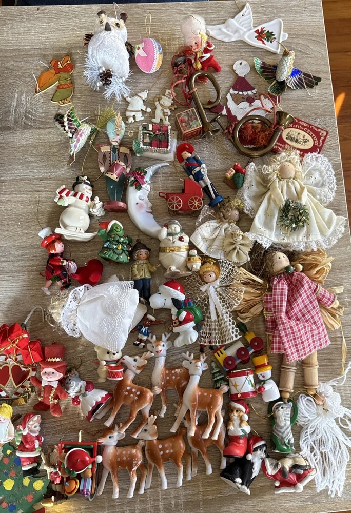 Mixed lot of over 60 vintage Christmas tree ornaments.