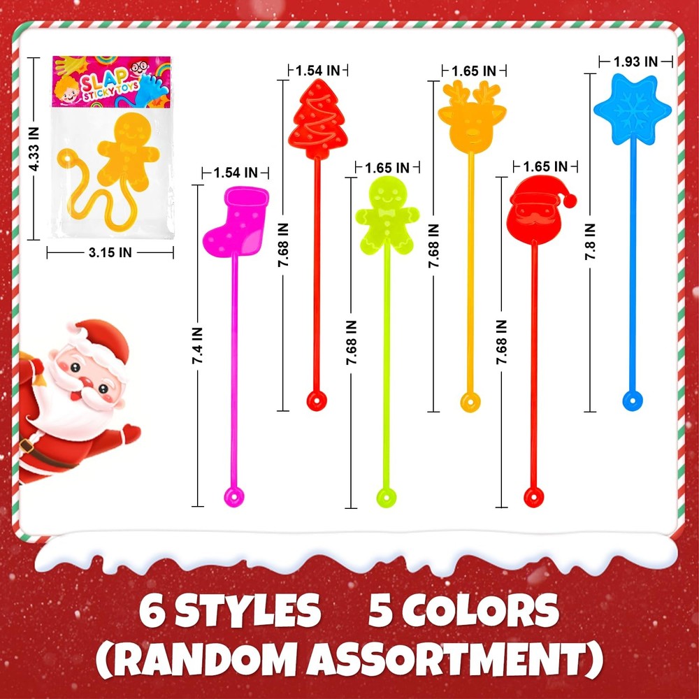 Bulk Christmas Stocking Stuffers for 200 PCS, Holiday Sticky Hands Toys Gifts Bulk for Toddlers, Xmas Goodie Bag Stocking Stuffers Party Favors, Winter Preschool Prize Giveaways for Students Bulk Christmas Sticky Hands - Enjoy 200 individually wrapped sticky hands with cheerful Christmas designs. Ideal for outdoor parties, holiday prizes, and sensory play during winter festivities! Unique Christmas-Themed Design - These slappy hands feature adorable designs, including Santa, snowflakes, reindeer, Christmas tree, stockings, and gingerbread men. With 6 unique styles and 5 vibrant colors, you'll receive a total of 200 in a fun random assortment. Christmas Party Favor Supplies - Add a festive touch to your Xmas celebrations with these sticky hands, making them great giveaways for party favors, non-candy treat, goody bag stuffers, pinata fillers, and group activities. Xmas Stocking Stuffers for - Make Christmas stockings even more festive with these fun , great stuff for boys and girls to add extra seasonal cheer! Holiday Classroom Prizes Bulk - Teachers can brighten students' days with these sensory toys, ideal for classroom games, school rewards, treasure boxes, and fun classroom gifts. Safe and Durable - Made from high-quality, non-vinyl, these trinkets are sticky, slimy, stretchy, and gooey for endless fun. Stick them to ceilings, walls, windows, and tables for hours of entertainment!