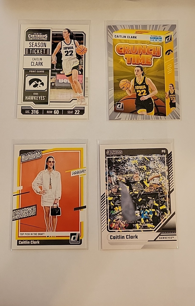Elevate your basketball card collection with this bulk lot of 20 Caitlin Clark cards. Each card captures the essence of the talented player, offering fans and collectors a tangible piece of her career. The lot provides a fantastic opportunity to acquire multiple cards at a great value, making it an essential addition for enthusiasts looking to expand their assortment. These cards are fresh pulls from various sets and are not autographed, ensuring their design and quality are focused on the athlete's representation and achievements. Whether you're a dedicated follower of Caitlin Clark's career or a connoisseur of sports trading cards, this set is an excellent way to commemorate her impact on the basketball court. Cards shown are for example and may not be the set sent. for display only.