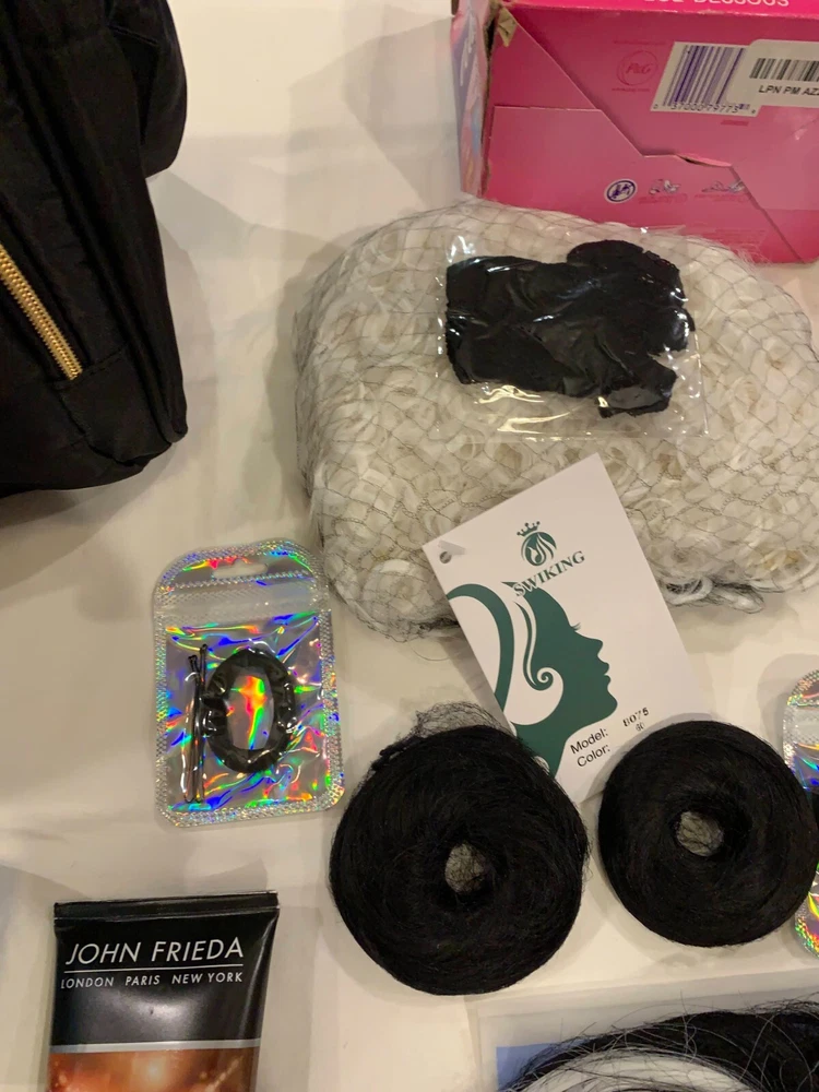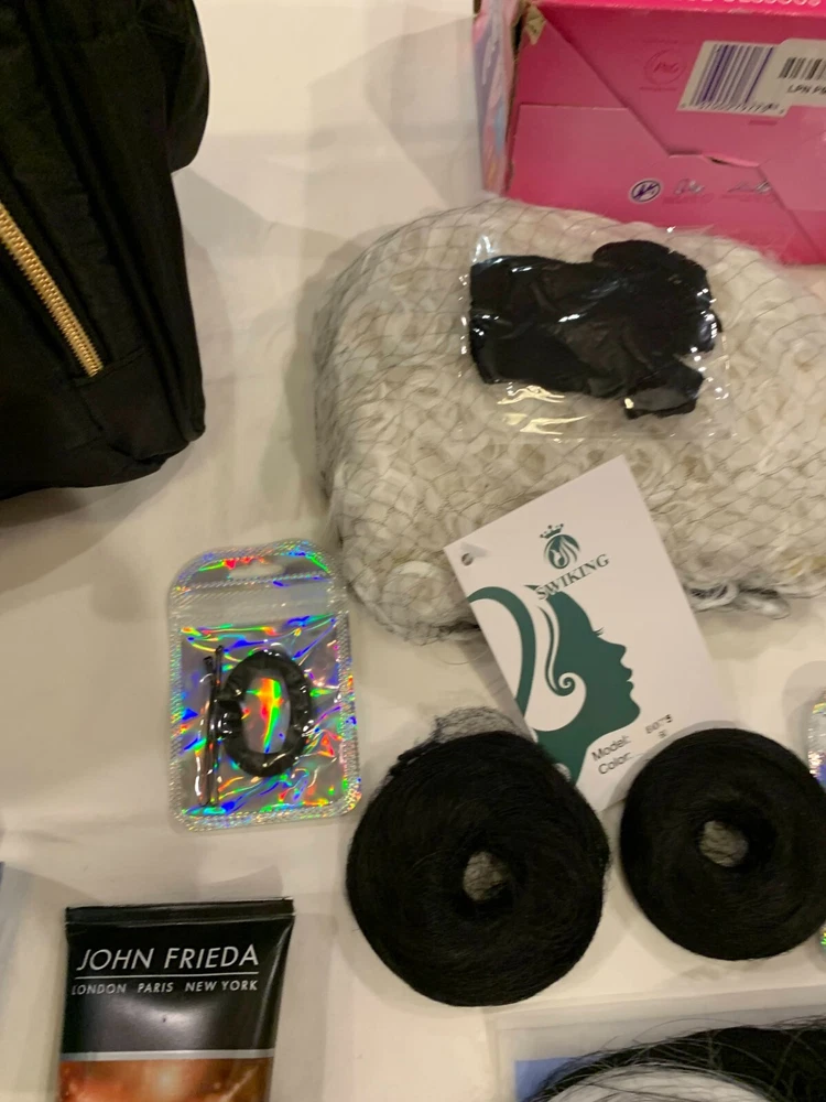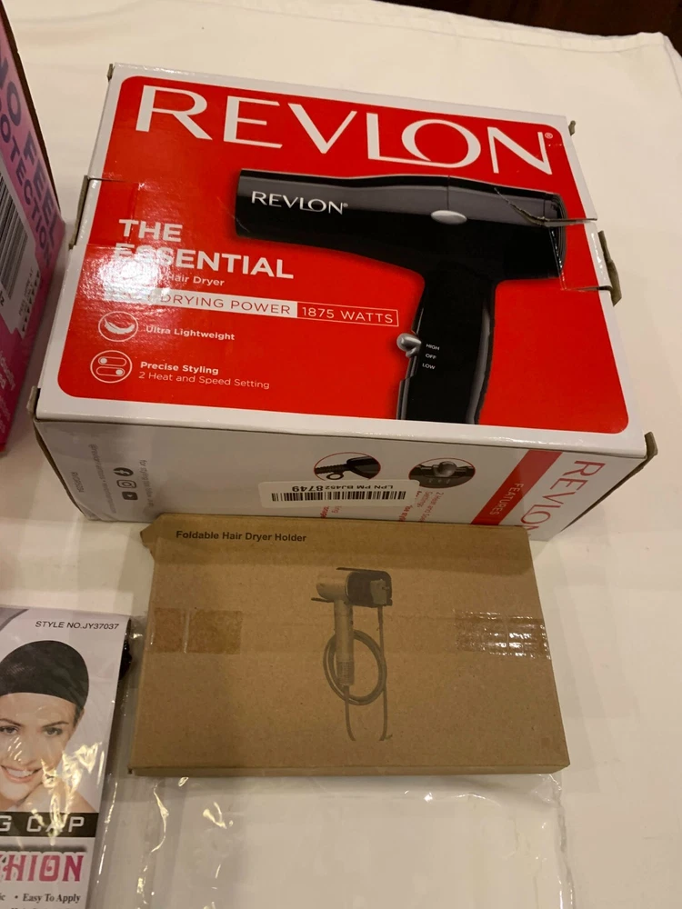 This bulk wholesale lot features a diverse array of beauty supplies and products. It includes a black travel bag, hair dryer, hair dryer wall mount, several wigs and hair pieces, cleanser, lotion, sunscreen, and much more! Everything is pictured in the photos. This lot has a retail value over $175+. All our bulk and/or wholesale lots are new or like new items unless otherwise described. These lots are designed to offer a higher retail value than the price Buyers actually pay, so these are ideal for resellers and dealers; or they can make a great long-term supply of consumable supplies, or fun Mystery Gifts or Secret Santa gifts. Due to the nature of these lots, some items may have some packaging damage, minor surface flaws or may be in perfect condition. These lots are not returnable or refundable, so please read the description and view the photos in detail before ordering.