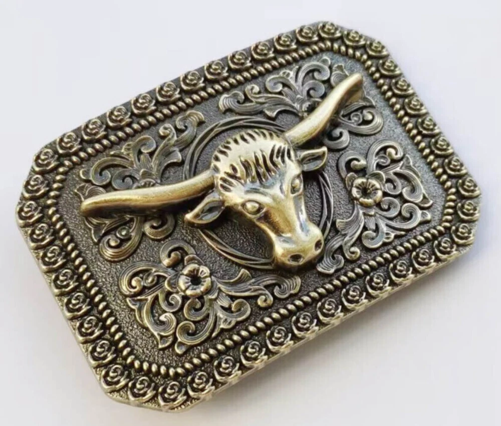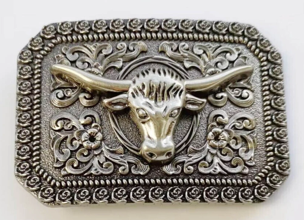 Bull Floral Western Belt Buckle Vintage Style Metal Men Women Cowboy Rodeo Wear