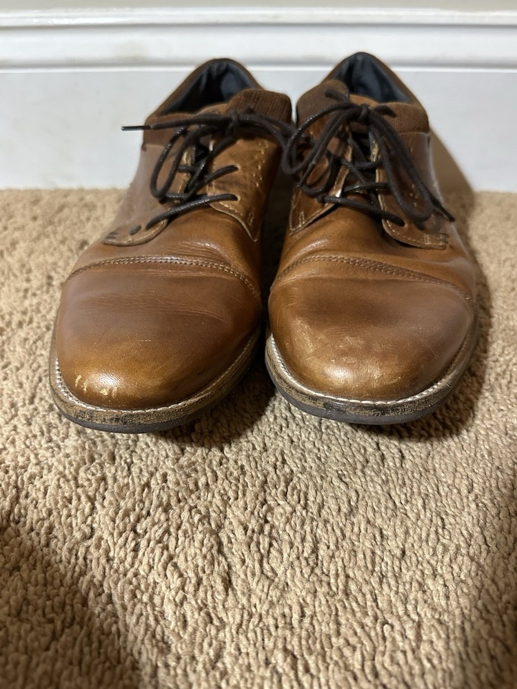 Johnston & Murphy Upton Plain Toe Lace Up Dress Shoe, Tan Full Grain, 10.5 M