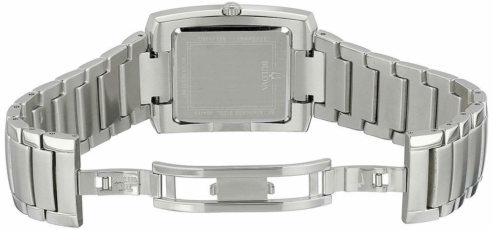 Bulova 96A169 Blue Dial Stainless Steel Silver Tone Mens Rectangle Watch