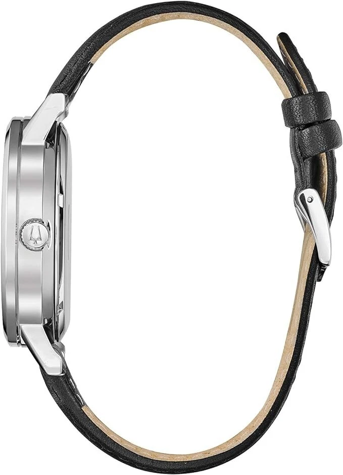 Case Color: Silver Dial Color: Silver With Manual/Booklet: Yes Seller's Warranty: No Style: Classic Reference Number: Does Not Apply Movement: Mechanical (Automatic) UPC: Does not apply Number of Jewels: 21 Jewels Watch Shape: Round With Original Box/Packaging: Yes Original Packaging Description: With Box Bezel Type: Fixed Band Material: Leather, Stainless Steel Band Color: Black Seller Warranty: No Max Wrist Size: 8" Type: Wristwatch Extra Links: No Age Group: Adult Department: Men Case Size: 42 mm Bezel Color: Silver Case Material: Stainless Steel Display: Analog gtin13: Does not apply Brand: Bulova