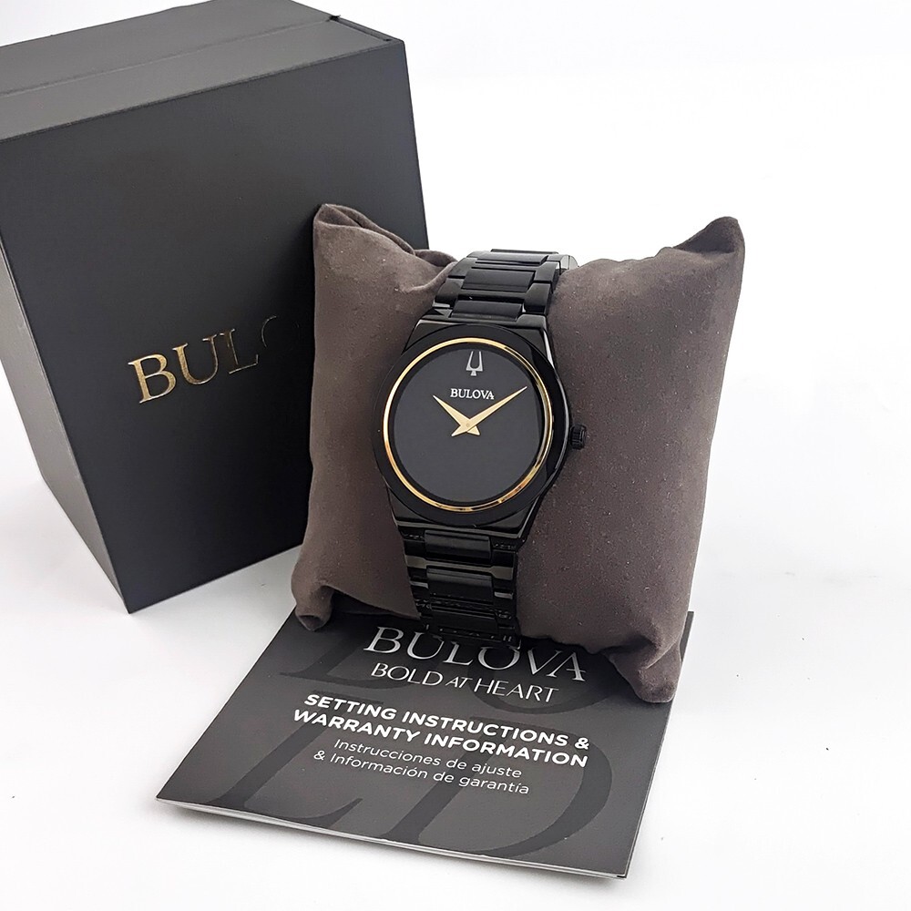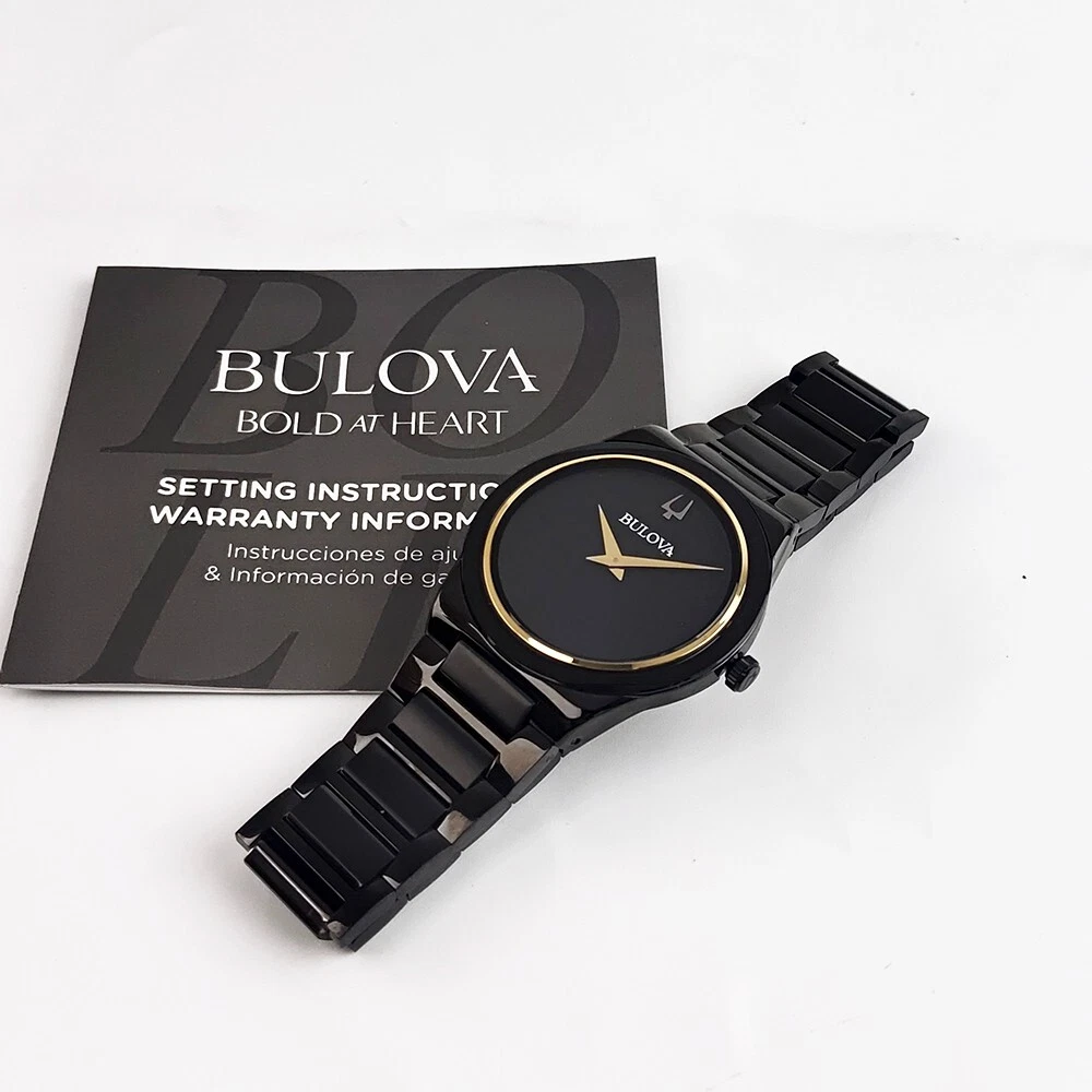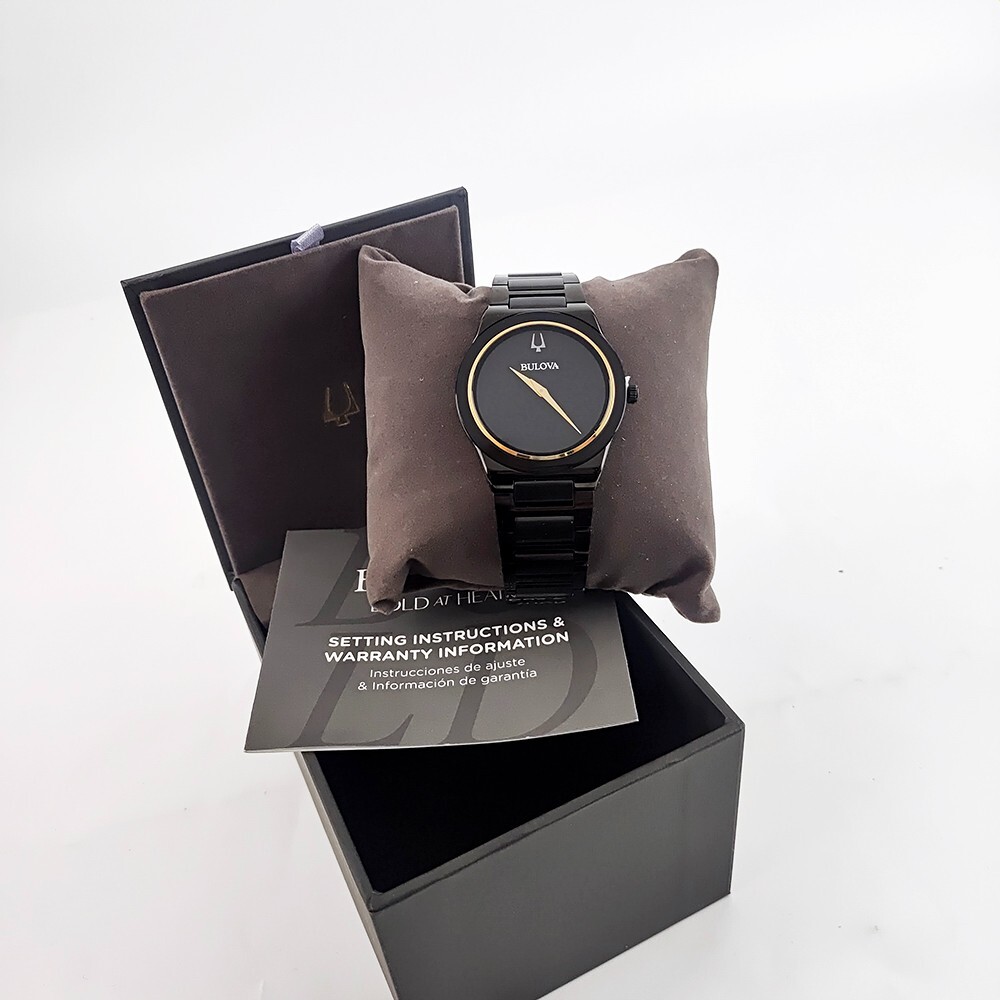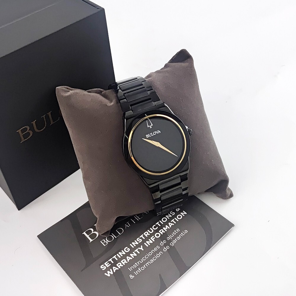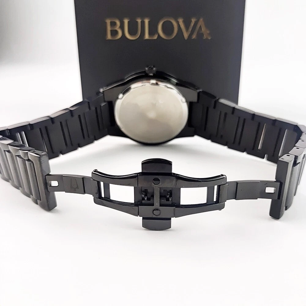 ⌚ Bulova 98A313 Modern Slim Movement Quartz Black Dial/Band Men's Watch 41 MM Product Information : Model:98A313 Band Color: Black Case Color:Black Band Material: Stainless Steel Case Material: Stainless Steel Band Type: Bracelet Case Shape:Round Technology:Quartz Functions:Slim Movement Clasp Type: Deployant Clasp with Push Buttons Crystal Material:Domed Sapphire Crystal Case Length: 47.5mm Case Width: 41mm Case Thickness: 6.5mm Department: Men Water resist: 30 Metres Shipping And Return : We will process your order within 24 hours, and in the event of a weekend, will deliver to the post office on Monday. You can check the logistic news anytime, if you find that the logistic news is not updated please don't worry, it is possible that it just hasn't been updated yet. Please contact me in time, I will deal with it for you. We support return within 30 days for refund, after applying for return, please send the goods back to me in neat and tidy condition. When I receive the goods, I will arrange the refund for you immediately! Thank you for your attention!