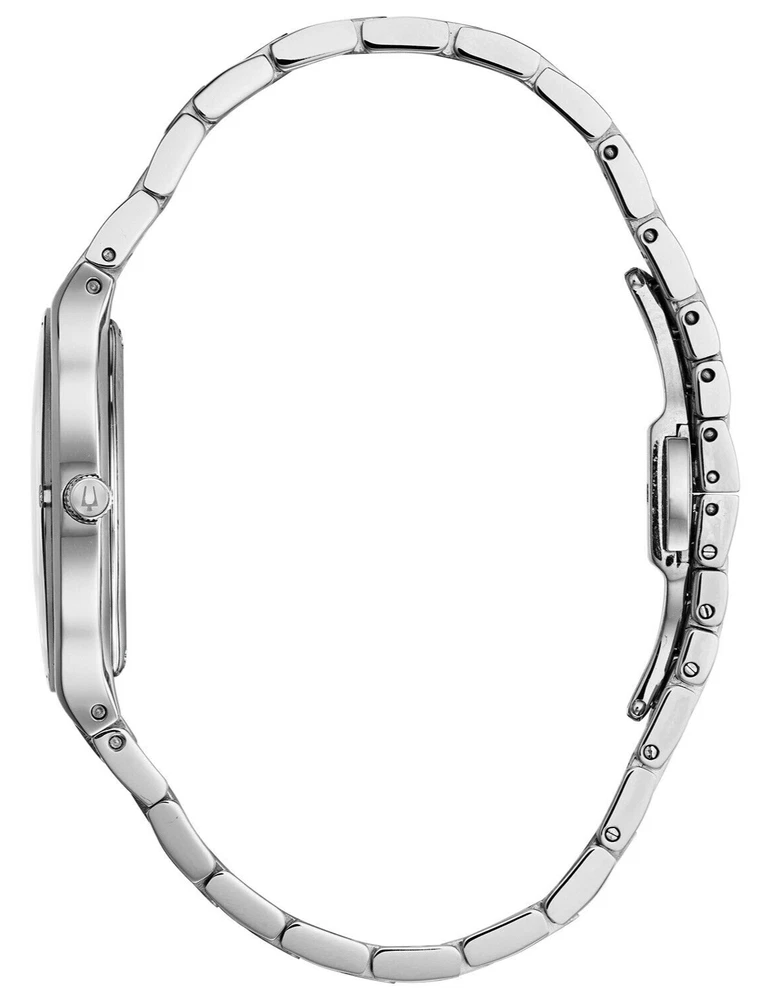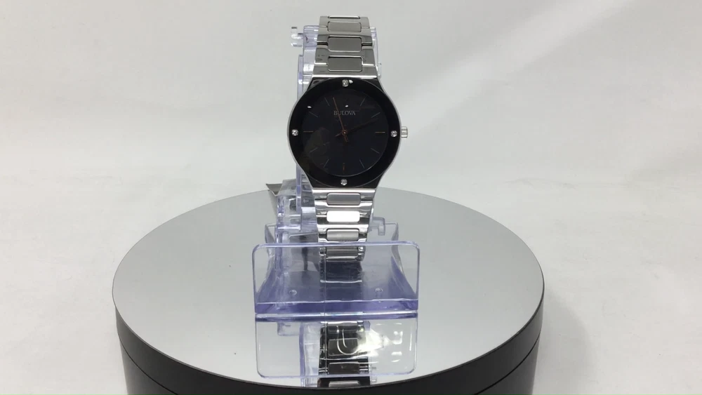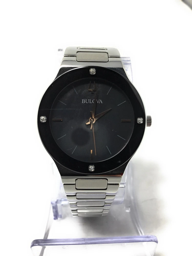 Bulova Millenia Women's Quartz Diamond Accent Black Dial Band 32mm Watch 96R231 Millenia Silver tone stainless steel case with edge to edge black domed metalized crystal. Black mother of pearl dial featuring four diamonds flush set on the crystal and rose gold tone accents. Water resistance to 30 meters. Diameter: 32mm Thickness: 7.5mm. Brand Bulova Model Number 96R231 Item Shape ROUND Dial Window Material Type Metalized Domed Mineral Crystal Display Type Analog Clasp Deployant Clasp with Push Buttons Case Material Stainless Steel Case Diameter 32mm Band Material Stainless Steel Band Width Women's Standard Band Color SILVER Dial Color Black Calendar None Movement Quartz (Battery) Water Resistant Depth 30 Meter Our items listed as "manufacturer refurbished" are retail customer returns. For example, Macy's or Dillard's might have too much inventory of a particular watch so they would send some models to the manufacturer. Bulova puts a lot of care and effort into re-manufacturing these watches before putting them back up for sale. Each watch is completely inspected, cleaned, repaired and its battery changed prior to being resold under the "manufacturer refurbished" condition. Our watches come inside the pictured box (not an official Bulova box), with a Bulova insert and a 2-year warranty provided by us, Watcheshalfprice, an authorized Bulova service center. They will NOT come with tags. These watches might have some very minor cosmetic wear, light nicks and scratches, on them picked up throughout the refurbished process. If you are dissatisfied with your "manufacturer refurbished" item please contact us prior to leaving feedback and we'll make things right. We are always willing to help our customers and want them to be happy. Shipping Shipping We take great care packaging every item to ensure safe shipment to you. Shipping is always free to our customers in the US and will be shipped out within one business day. Returns Returns We accept returns within 30 days of purchase. All we ask is that you ship back with original box and manuals. Your refund will be processed as money back to your original method of payment. Payment Payment Immediate payment is required upon selecting "Buy It Now" or upon checking out through the cart. Sales Tax: eBay collects sales tax, not us. The applicable amount of sales tax charged to an order will be calculated based on the shipment destination's state and local sales tax laws. Contact Us Contact Us At watcheshalfprice, we are committed to providing our customers with the best possible on-line shopping experience. This includes a commitment to excellent customer service, even after your order has been delivered. Please submit any questions or inquiries regarding your order by sending us a message through the eBay messaging system. Our customer service department will respond within one business day. Our hours are Monday through Friday, 8 am – 5 pm CST. Feel free to send us a message and our trained support staff will be happy to help you. About Us We are a genuine seller offering quality items at lower prices. Every item is carefully packaged using the latest technology to ensure safe shipment to you. Enjoy your visit! You may also be interested in... View more great items Frooition Frooition | eBay design, eBay store design, eBay shop design, eBay template design, eBay listing design
