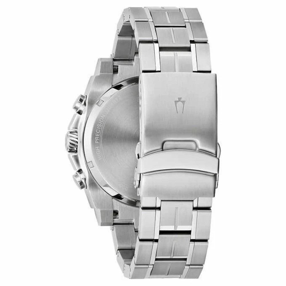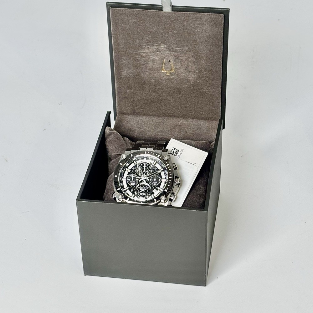 The Bulova Precisionist Chronograph Stainless Steel Quartz Men's Watch 98B405 is a stylish and versatile timepiece suitable for various occasions. With a sleek silver bezel, case, and band, this watch exudes a modern and sophisticated look. The quartz movement ensures accurate timekeeping, while the chronograph feature adds practicality to its design. Packaged in its original box, this watch also includes papers for authenticity. The diver, sport, and casual styles make it a great choice for men looking for a dependable and fashionable accessory.