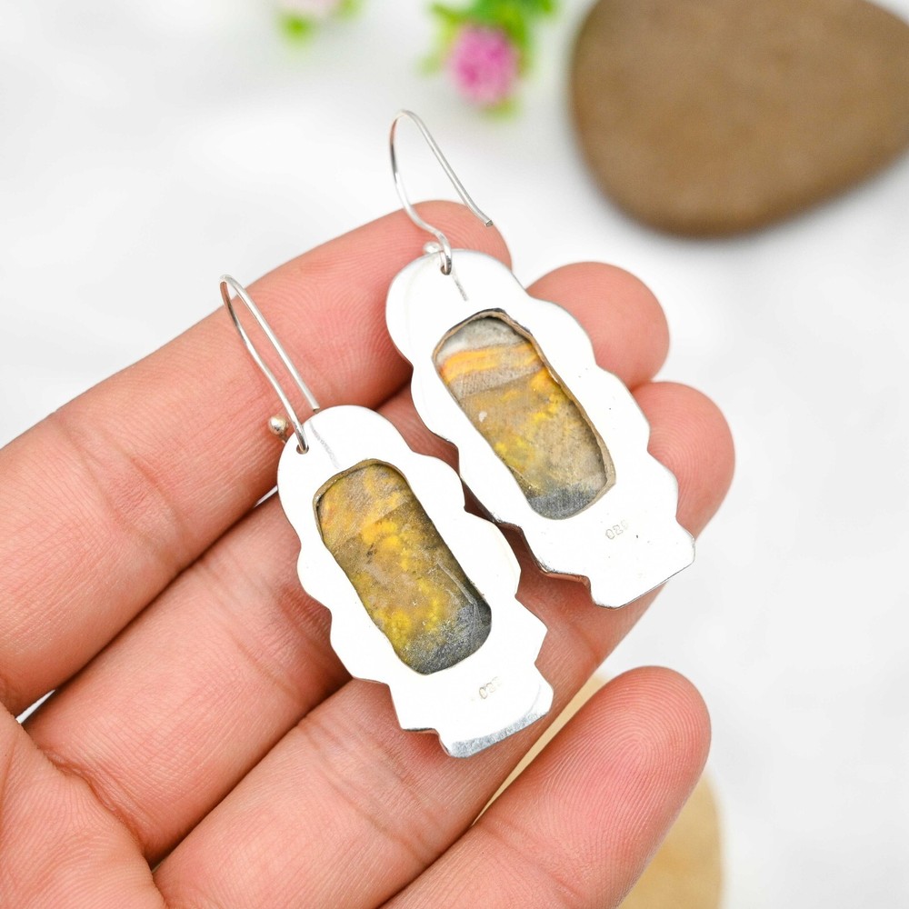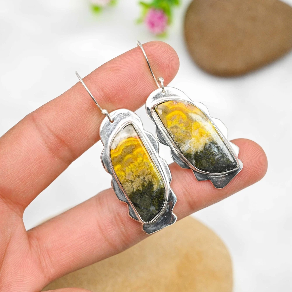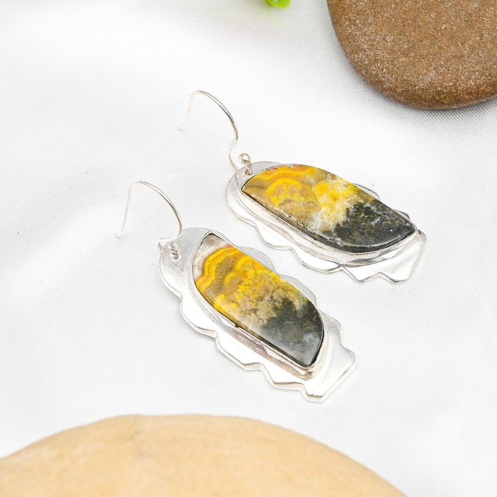 Item Length:2.16"Main Stone Creation:NaturalSeller Warranty:YesSetting Style:BezelCollection:HandmadeCountry of Origin:IndiaOccasion:Anniversary, Birthday, Christmas, Engagement, Father's Day, Mother's Day, Valentine's Day, WeddingTheme:Beauty, Bohemian, Ethnic, Halloween, LoveColored Diamond Intensity:N/AMain Stone Treatment:Not EnhancedCut Grade:ExcellentClosure:HookNumber of Diamonds:N/AMain Stone Color:Same As PictureMetal:Sterling SilverDiamond Color Grade:N/ANumber of Gemstones:2Brand:HandmadeSecondary Stone:Bumble Bee JasperType:EarringsMetal Purity:925Color:SilverShape:Same As PictureDiamond Clarity Grade:N/AEar Area:LobeStyle:Dangle/DropMain Stone:Bumble Bee JasperMain Stone Shape:Same As PictureCountry/Region of Manufacture:IndiaTotal Carat Weight:10 carat and aboveCertification:N/AMaterial:Stone, GemstoneBase Metal:Sterling Silver