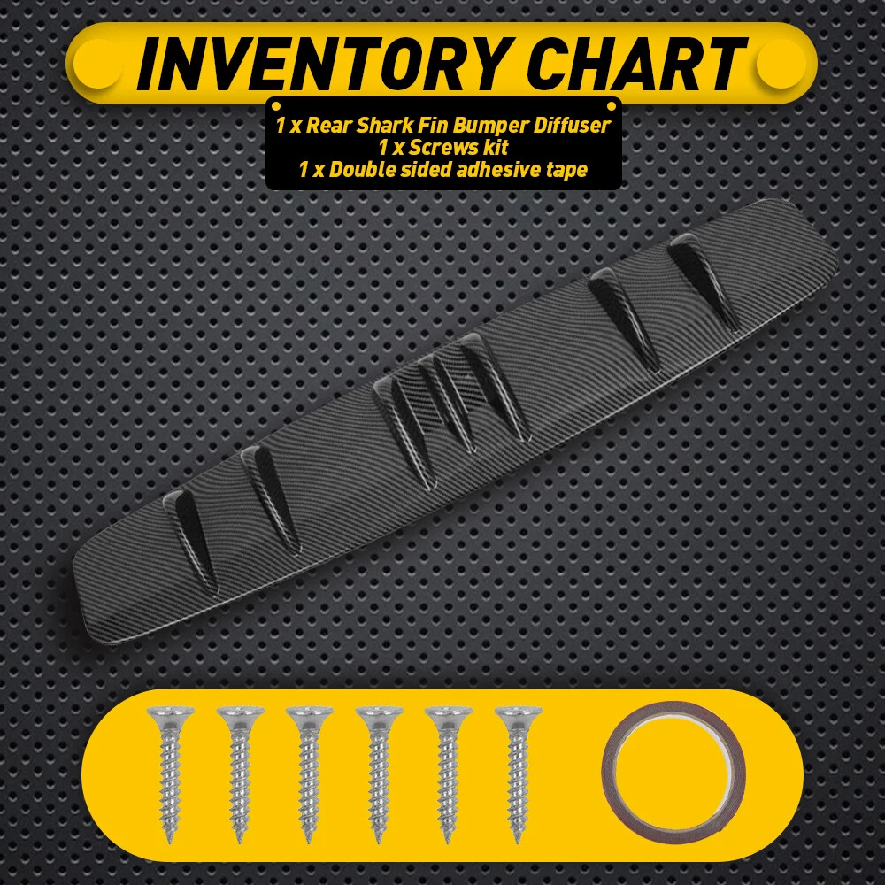 Fit for: Suitable for most cars with flat bottom of rear bumper and exhaust pipe not in the middle. If the model has an exhaust pipe on the left and right, the distance between the exhaust pipes must be greater than 84cm (33"). Specifications: Product Material: ABS Color: Carbon fiber (as pictures show) Placement on Vehicle: Lower, rear Features: 【Reduce Air Resistance】 This shark fin diffuser designed to increase a vehicle's aerodynamic performance and improve the stability of vehicle during fast driving. 【Excellent Appearance】 Bumper Diffuser Spoiler Splitter Wing Trim Carbon Fiber Universal 33" Lower Rear Fit for: Suitable for most cars with flat bottom of rear bumper and exhaust pipe not in the middle. If the model has an exhaust pipe on the left and right, the distance between the exhaust pipes must be greater than 84cm (33"). Specifications: Product Material: ABS Color: Carbon fiber (as pictures show) Placement on Vehicle: Lower, rear Features: 【Reduce Air Resistance】 This shark fin diffuser designed to increase a vehicle's aerodynamic performance and improve the stability of vehicle during fast driving. 【Excellent Appearance】 Shark fin and clean lines design with beautiful appearance to decorate your car, which gives your vehicle a more aggressive racing look. 【ABS Material】 Made of ABS material with high-quality, waterproof, durable functions and will not easy to break. 【Universal Fit】 Universal fit for most cars, please measure the size before purchasing. Note: Please confirm the size and make sure that there is enough space to install before purchasing!!! Professional installation is required. Packaging Include: 1 x Rear Shark Fin Bumper Diffuser 1 x Screws kit 1 x Double sided adhesive tape Item Specifics Brand AUXITO Type Spoiler Lip Placement on Vehicle Lower, rear Material ABS Color Carbon fiber Features Easy Installation Attachment Type Screw-On Universal Fitment Yes Items Included Screws Manufacturer Warranty 5 Years Performance Part No Vintage Car Part Yes NOTICE Please double check the part number and compatible make. Country/Region of Manufacture United States Payment 1. We can only accept payment from PayPal. 2. Please keep the consistency of Paypal address and ebay address. Shipping 1. All items will be shipped in 12 hours after receiving your payment . 2. We ship this item to US only via USPS first class mail. It usually takes 3-5 working days to deliver. Returns 1. We offer 30 days return policy. 2. Please contact us within 30 days from the date you receive your package if you have any questions with the products . 3. Refund will be sent after we got your returned package. 4. All returned items should be in the original packaging with tracking number. Contact Us We work from Monday - Saturday 9:00AM - 6:00PM, but we will reply once we get your message. There will be delay on response if you send message or E-Mail on Sunday. DESCRIPTION PAYMENT SHIPPING RETURN POLICY CONTACT US Shop Category Store Home Other Hot Item For 2002-2008 Dodge Chrysler Stereo Car Radio Wiring Harness Adapter USD 11.59 Universal Car Windshield Wiper Squirter Washer Nozzle Spray Jet Kit Fluid Hose T USD 9.99 Rear Left or Right Outside Door Handle for 2010-2016 Toyota 4Runner Lexus GX460 USD 14.99 1set Control Knob Speed Fan Heater A/C For Jeep Wrangler TJ 99-06 5011218AA USD 9.99 Door Latch Cables LH+RH Front For 2007-2013 Chevy Silverado 1500 2500 HD 3500 HD USD 17.99 New List Item Exterior Door Handle For Hyundai 2011-2016 Elantra Primed Rear Right Side USD 12.99 6M Body Side Molding For Roll Chevy Belt Exterior Protector / GMC SUV's Truck USD 39.99 LED 3RD Strobe Cargo Brake Light For 88-98 Chevy GMC C/K1500 Silverado 16522433 USD 34.99 Touch Screen Display for Cadillac 2018-2021 Escalade ATS CTS XTS CUE TouchSense USD 31.99 2x Rear Bumper Reflector For Chevy Equinox 2010-2017 Tail Lamp Left Right Rear U USD 39.99 Excellent Delivery Bumper Diffuser Spoiler Splitter Wing Trim Carbon Fiber Universal 33" Lower Rear Fit for: Suitable for most cars with flat bottom of rear bumper and exhaust pipe not in the middle. If the model has an exhaust pipe on the left and right, the distance between the exhaust pipes must be greater than 84cm (33"). Specifications: Product Material: ABS Color: Carbon fiber (as pictures show) Placement on Vehicle: Lower, rear Features: 【Reduce Air Resistance】 This shark fin diffuser designed to increase a vehicle's aerodynamic performance and improve the stability of vehicle during fast driving. 【Excellent Appearance】 Shark fin and clean lines design with beautiful appearance to decorate your car, which gives your vehicle a more aggressive racing look. 【ABS Material】 Made of ABS material with high-quality, waterproof, durable functions and will not easy to break. 【Universal Fit】 Universal fit for most cars, please measure the size before purchasing. Note: Please confirm the size and make sure that there is enough space to install before purchasing!!! Professional installation is required. Packaging Include: 1 x Rear Shark Fin Bumper Diffuser 1 x Screws kit 1 x Double sided adhesive tape Payment Shipping Returns Contact Us 1. We can only accept payment from PayPal. 2. Please keep the consistency of Paypal address and ebay address. 1. All items will be shipped in 12 hours after receiving your payment . 2. We ship this item to US only via USPS first class mail. It usually takes 3-5 working days to deliver. 1. We offer 30 days return policy. 2. Please contact us within 30 days from the date you receive your package if you have any questions with the products . 3. Refund will be sent after we got your returned package. 4. All returned items should be in the original packaging with tracking number. We work from Monday - Saturday 9:00AM - 6:00PM, but we will reply once we get your message. There will be delay on response if you send message or E-Mail on Sunday. All rights reserved. On Dec 23, 2024 at 23:56:01 PST, seller added the follow
