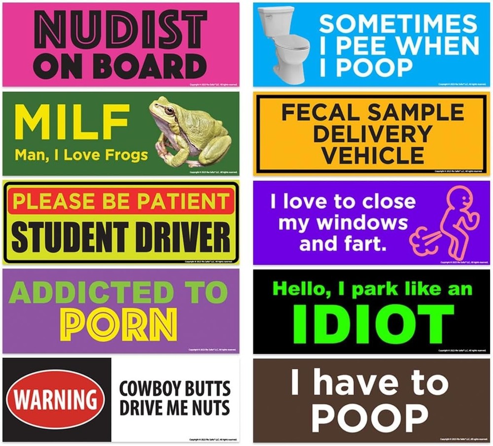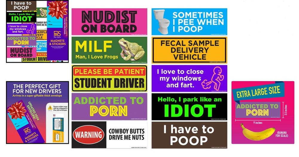 Bumper Prank Magnets for Adults – 10 Funny Car Stickers that Stick around! ‹ › ‹ › ‹ › ‹ › ‹ › ‹ › ‹ › ‹ › ‹ › ‹ › ‹ › Bumper Prank Magnets for Adults Inject a dash of humor into the mundane with our hilarious 10-pack set of car magnets designed for the mischievous spirit in everyone. Each of these magnets brings laughter and perhaps a little cheekiness to the world of automotive humor, ensuring your vehicle stands out with hilarious zeal. Product Features: Set of 10 Prank Magnets: Each pack includes a delightful collection of 10 witty and slightly naughty magnet stickers that are perfect for car pranks. Exxxxtra Large Size: Each magnet measures an impressive 9 x 3.5 inches with a thickness of 0.5mm, ensuring they remain firmly in place and are visible from afar. Easy On, Easy Off: Magnets are a quick and car-friendly solution. Easily removable without causing damage to the vehicle's paint job, unlike conventional stickers. Durable Quality: Made to withstand the rigors of outdoor use, these magnets are designed for lasting fun. Not self-adhesive stickers, but rather vibrant car magnets that add personality to your ride. Versatile Use: Ideal for office pranks, new driver humor, gag gifts, and perfect for April Fool's Day antics, these magnets cater to all pranking needs. Why Choose Our Prank Magnets? If you're looking for a fun and way to share a laugh or liven up a situation, these Bumper Prank Magnets are an excellent choice. Whether as a joke for friends, a playful jab at your coworkers, or simply for a good, hearty laugh on the road, these magnets deliver with style and flair. Upgrade your pranking game with these standout magnets that will have everyone chuckling! Grab your 10-pack set today and let your vehicle do the talking. Shipping Free & Fast Shipping - We offer free shipping to most of the USA with a normal delivery time of 3-7 days. However, due to the current situation, additional delivery time (up to 3 weeks) may be required for some items. Alternative Carriers - We may use alternative carriers (e.g. USPS, FedEx, UPS, etc.) to ensure your package arrives safely and on time. Due to the use of multiple carriers, we are unable to provide a tracking number automatically. Handling Time - Orders are processed and shipped within 1-2 business days of receiving cleared payment. Shipping Restrictions - Shipping to Alaska, Hawaii, Puerto Rico, Guam, and other US territories may incur shipping charges or delivery restrictions. Please contact us before ordering, or your order can be refunded/cancelled. State Restrictions - There may be restrictions based on your state of purchase. For example, certain items may not be shipped to California due to state regulations. Contact for Tracking Updates - If you require tracking updates or have any concerns about the delivery of your order, please feel free to contact us, and we will be happy to assist you. Return 30-Day Hassle-Free Returns - We want you to be completely satisfied with your purchase. If you are not, you can return the item within 30 days of receiving it for a full refund or exchange. Easy Return Process - To start a return, simply contact us and we will provide you with a prepaid return shipping label and detailed instructions. Restocking Fee - There are no restocking fees for returns. However, the buyer is responsible for return shipping costs if the return is not due to a seller's error. Refund Processing Time - Refunds will be processed within 5 business days of receiving the returned item in its condition. Payment We accept all major credit cards, PayPal, and Apple Pay for your convenience. Your payment information is secure and encrypted to ensure a safe and seamless transaction. Please complete your payment within 3 days of purchase to avoid any delays in shipping. Feedback Your feedback is extremely important to us. We strive to provide the best products and customer service possible. If you are satisfied with your purchase, please take a moment to leave us a positive review. If you have any concerns or issues with your order, please contact us before leaving negative feedback. We are committed to resolving any problems and ensuring your satisfaction. Contact Us If you have any questions or concerns, please feel free to out to our customer support team. You can contact us through the eBay messaging system. We are available Monday to Friday, 9:00 am to 5:00 pm EST, and we will do our best to respond to your inquiry within 24 hours. Buy it now and enjoy a pleasant shopping experience! Size: 9 x 3.5 inches Features: Set,Funny,Practical Jokes,Prank,Magnetic,Easy On, Easy Off,Non-Damaging,Inappropriate Humor,Bumper Gag Character: Funny Bumper Magnets Material: PVC,Polyvinyl Chloride (PVC) Type: Bumper Sticker Occasion: All Occasions Color: Multicolor Shape: Rectangle Style: Humorous Item Weight: 0.5 oz Item Thickness: 0.5 in