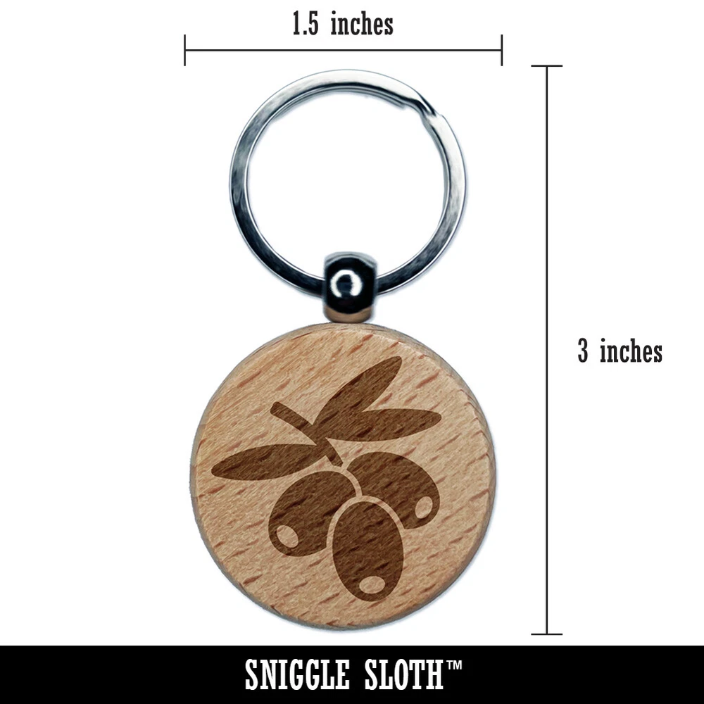 Bunch of Olives Engraved Wood Round Keychain Tag Charm